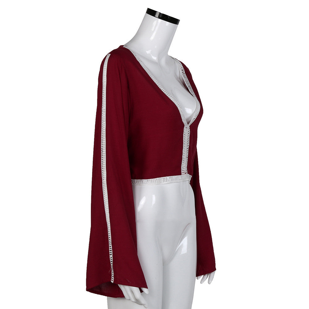 Blusas feminina Women Sexy Blouses Flare Sleeve Deep V Neck Loose Hollow Blouse Shirt Tops Shirt IMY66