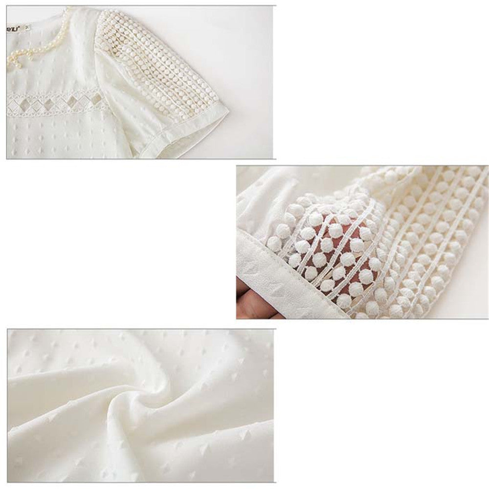 Blusas Femininas Women Lace Pearl Blouse Short Sleeve Shirt V Neck Doll Tops Women Blouses Best IMY66