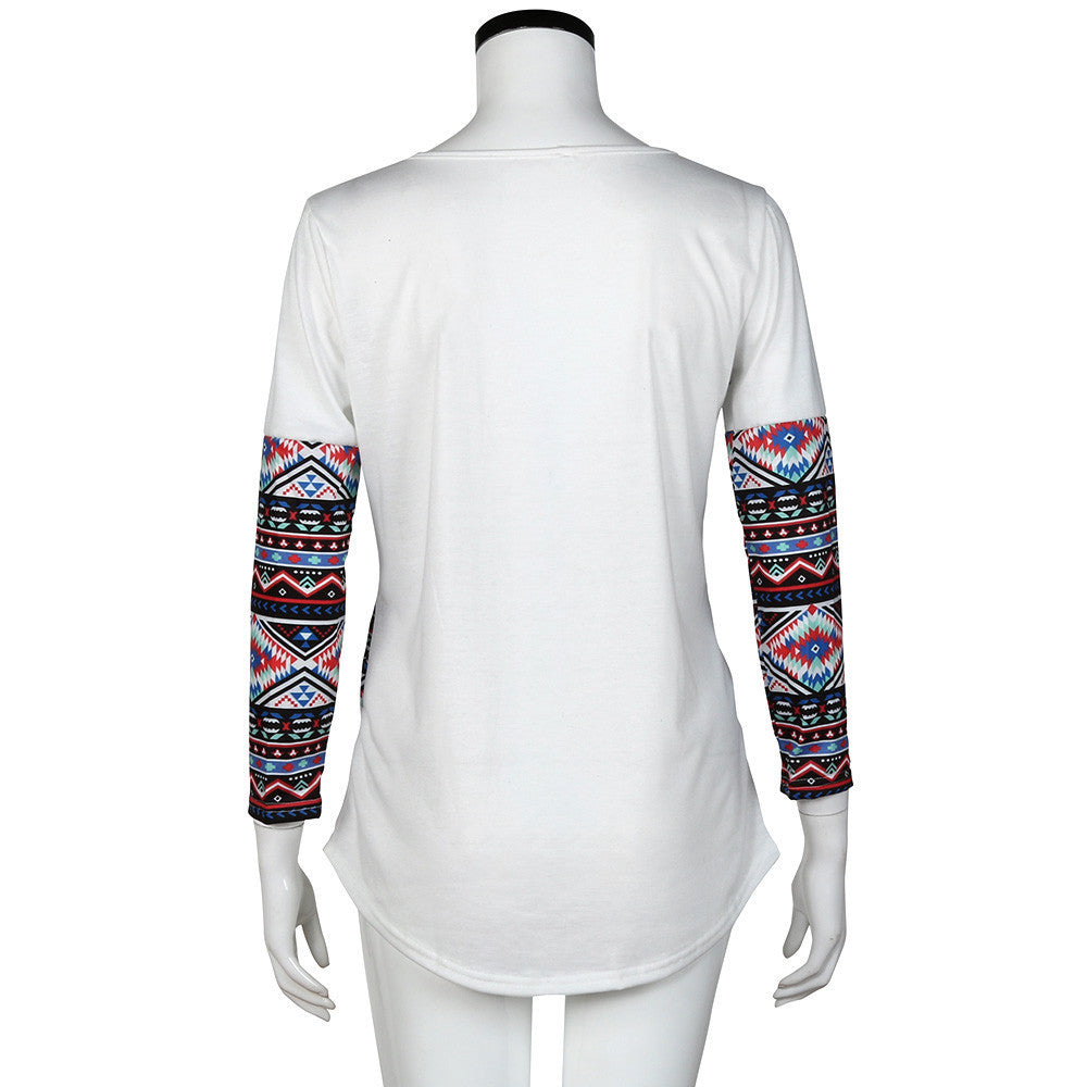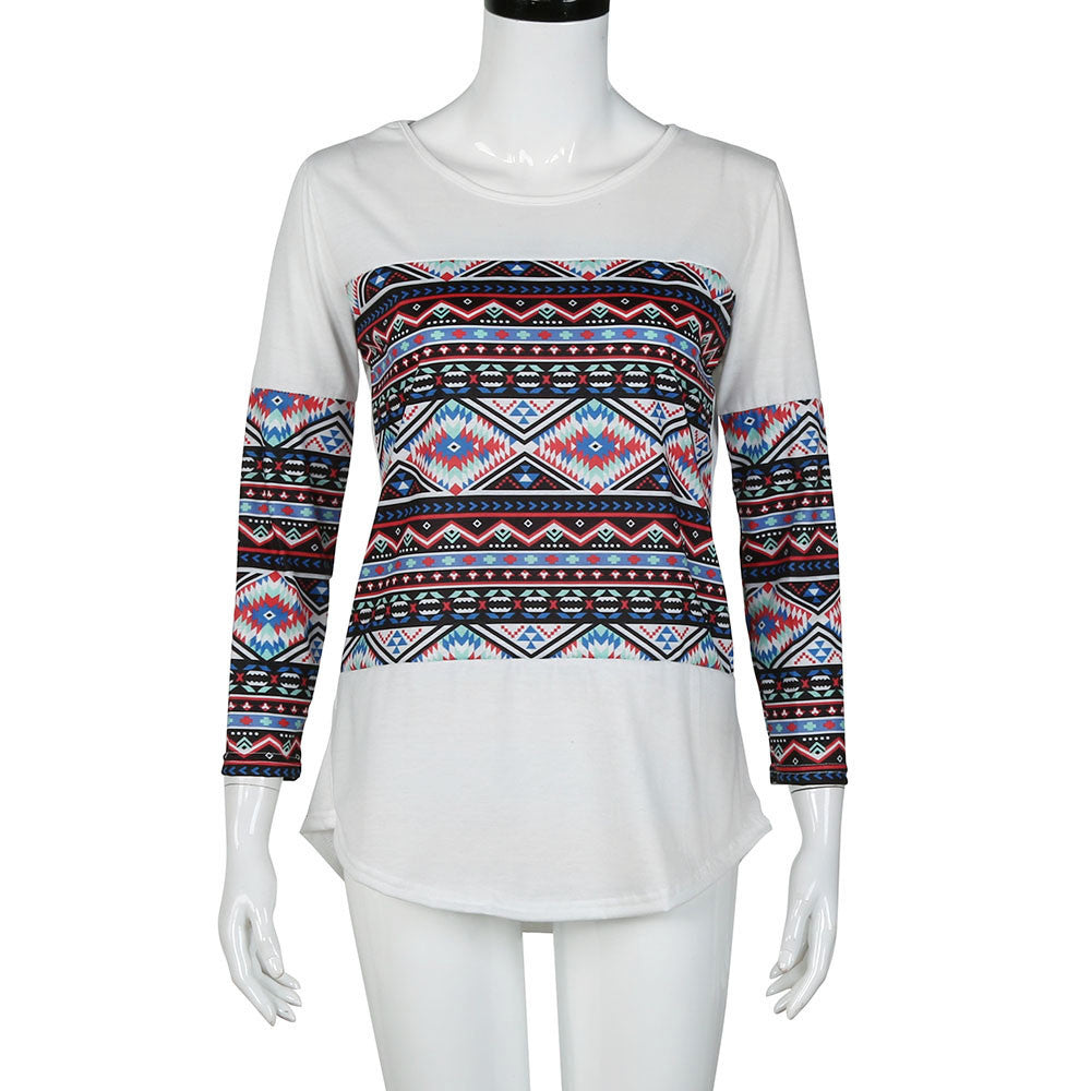 Bohemia Style Floral Print Tee Shirts femme Women Long Sleeve Round Neck Casual T-Shirt Tops Camisetas Feminina IMY66