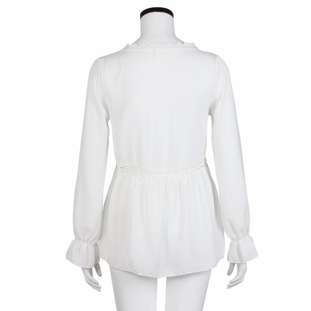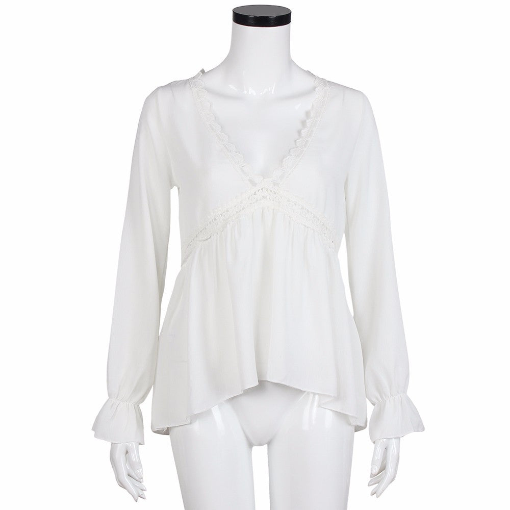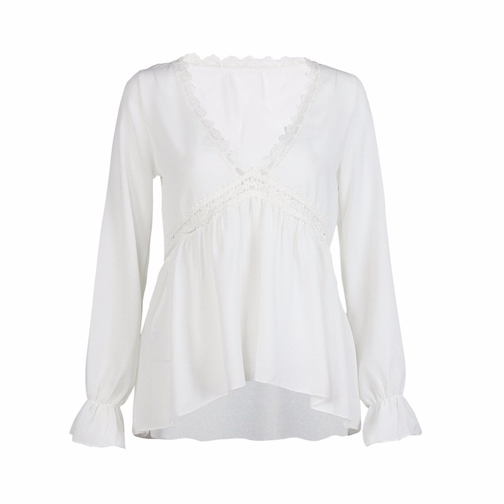 Boho Women Blouse Casual Loose Tops Sexy V Neck Lace Long Sleeve Shirt Blouses Blusas feminina blusa de renda IMY66