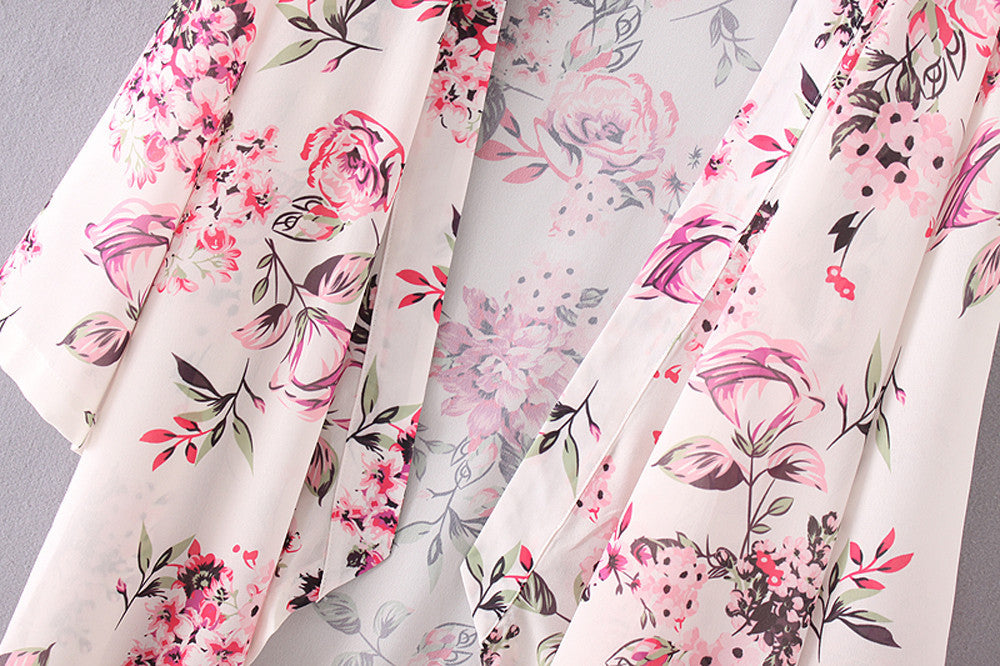 Boho Women Chiffon Blouse Kimono Cardigan Floral Print Chiffon Loose Shawl Outwear Tops Cover up Blouse Blusas Feminino IMY66