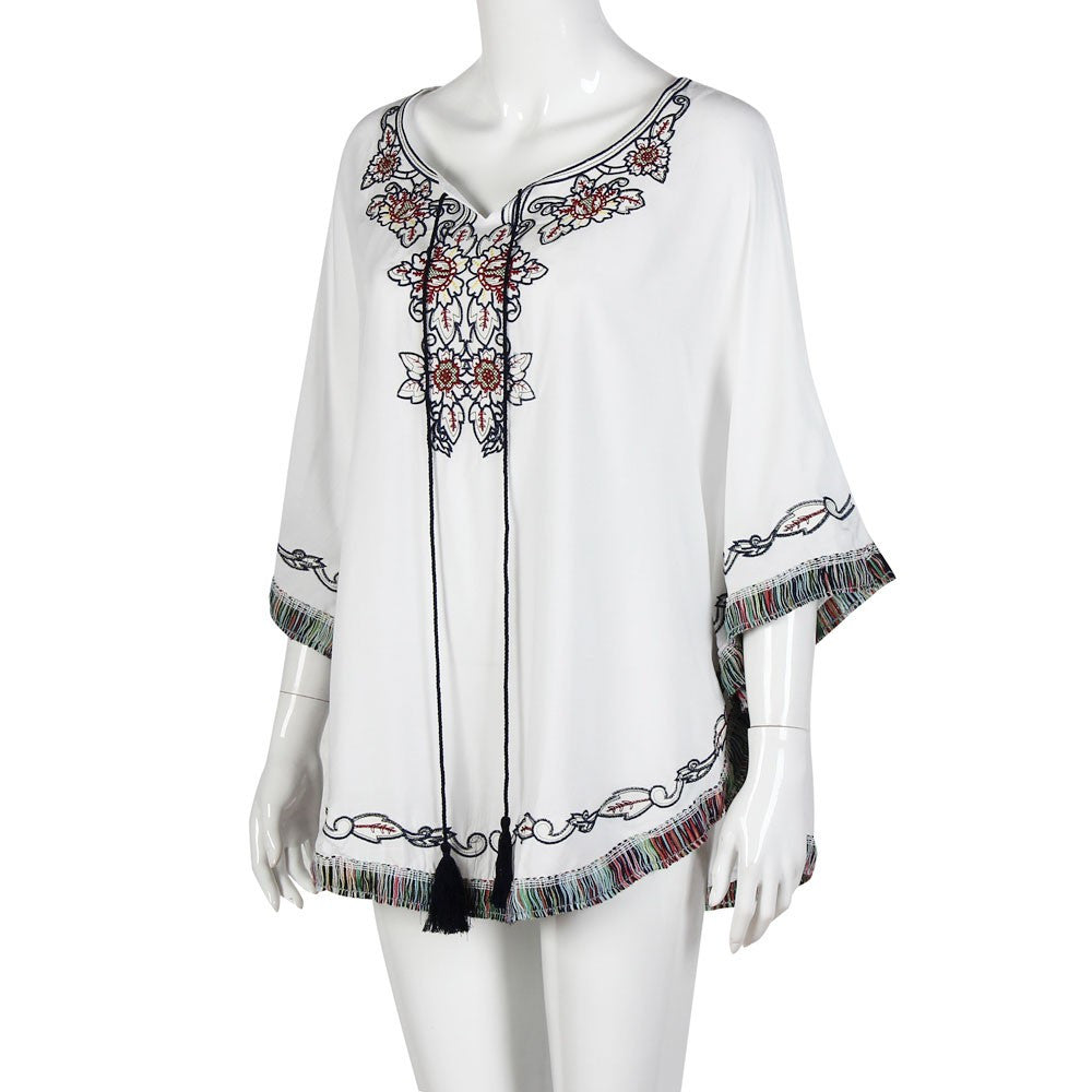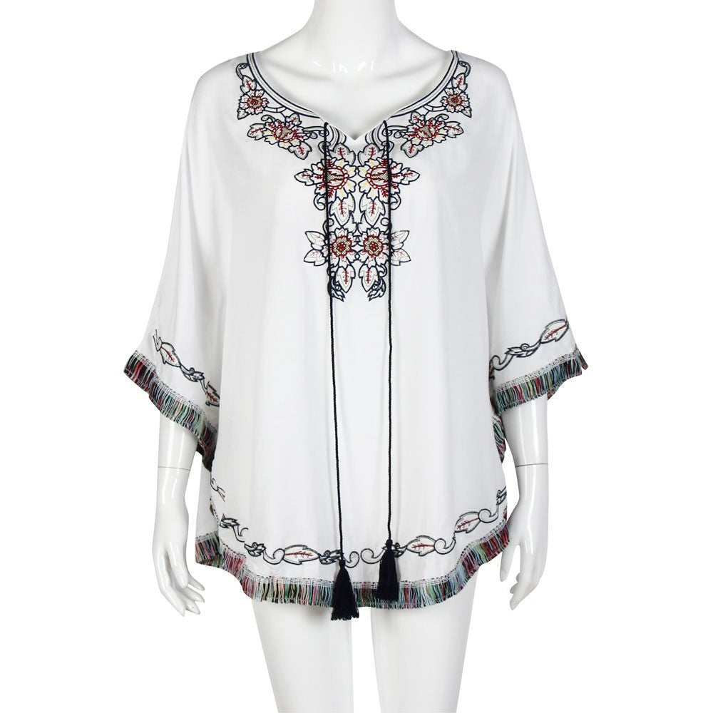 Boho Women Dress Bohemia National Wind Printing Round Neck BaT-Shirt Blouse Tops Beach Dress vestidos femininos IMY66