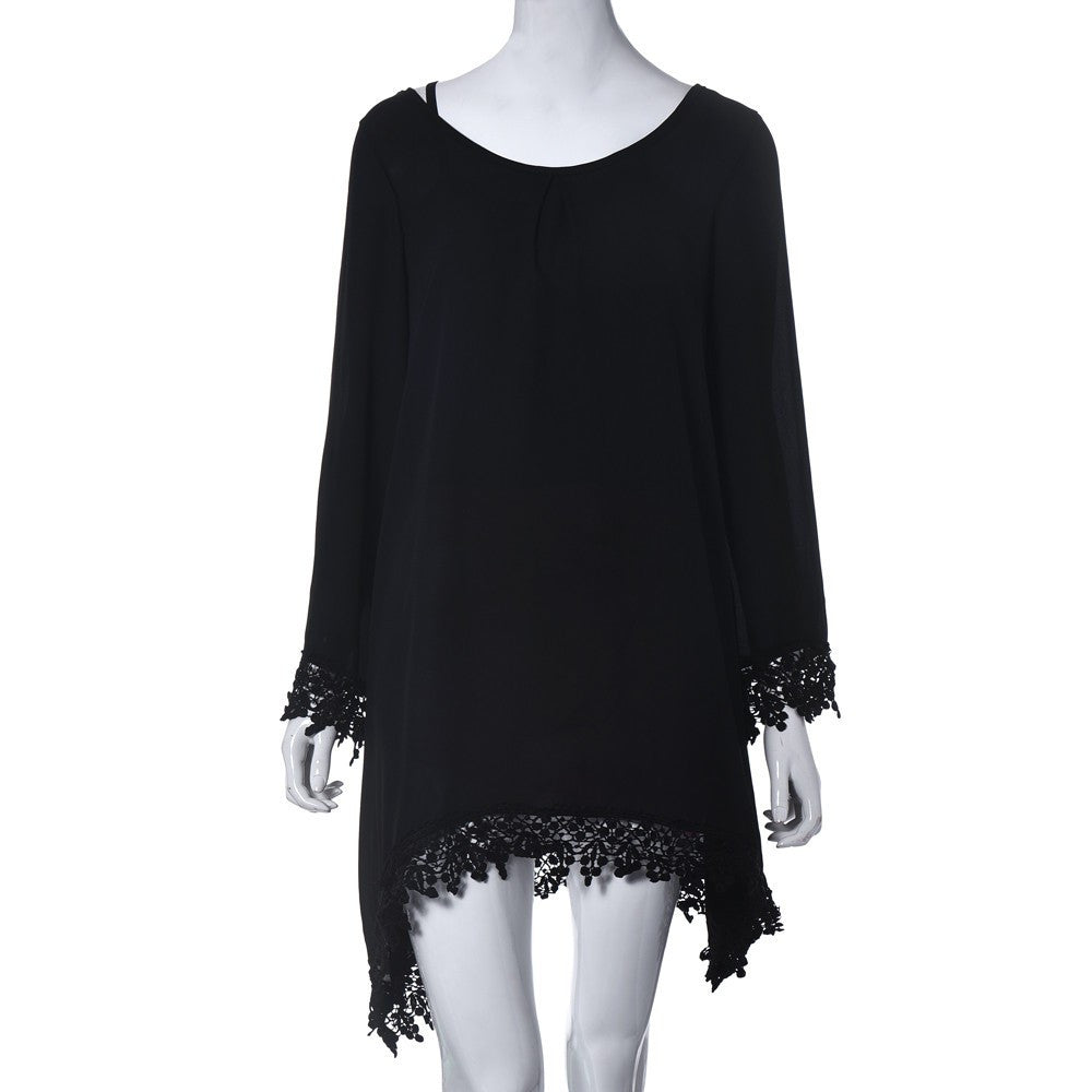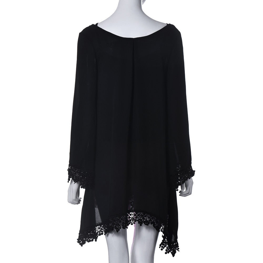 Boho Women Dress Casual Long Sleeve Lace Tassels Loose Beach Mini Dress Black Dress vestidos Plus Size IMY66