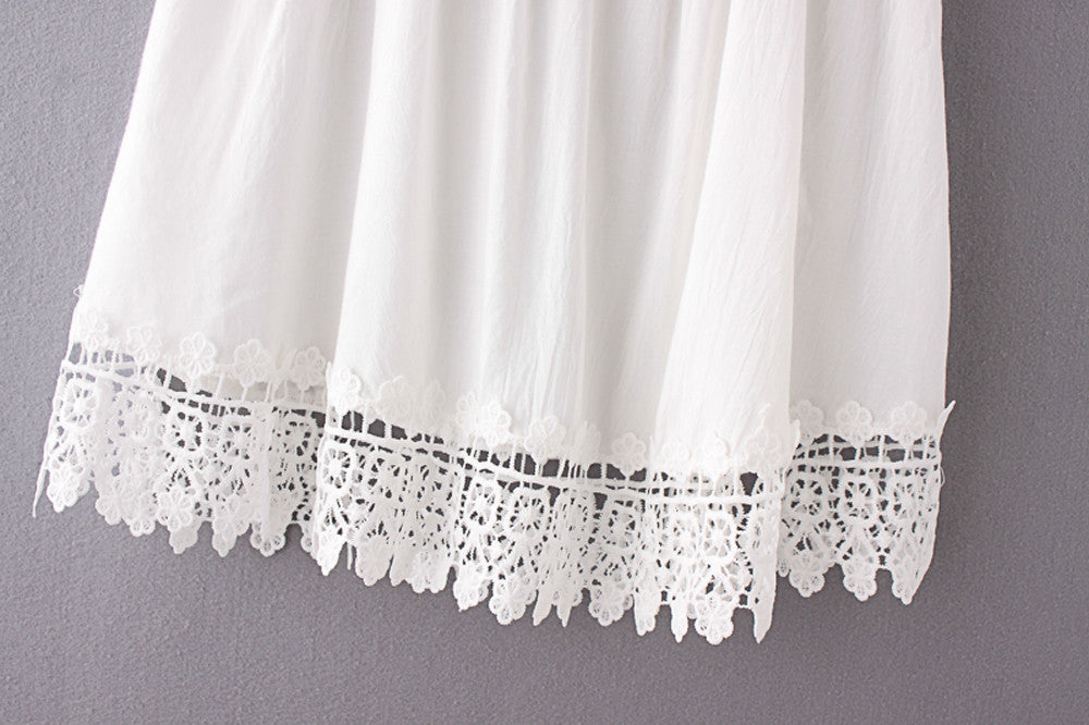 Boho Women White Lace Crochet Splice Dress Sexy Strap V-Neck Party Mini Dress Beach Dresses vestidos IMY66