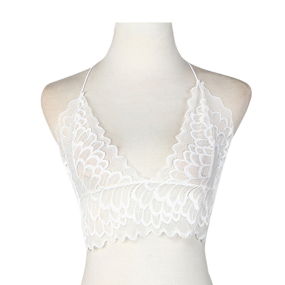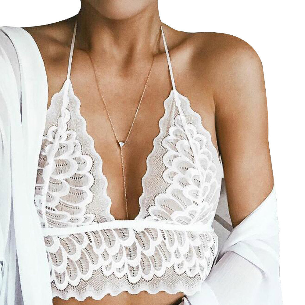 Bustier Crop Tops For Women Sexy Hollow Translucent Underwear Sheer Lace Strap Lingerie Bra Tops Cropped feminino IMY66