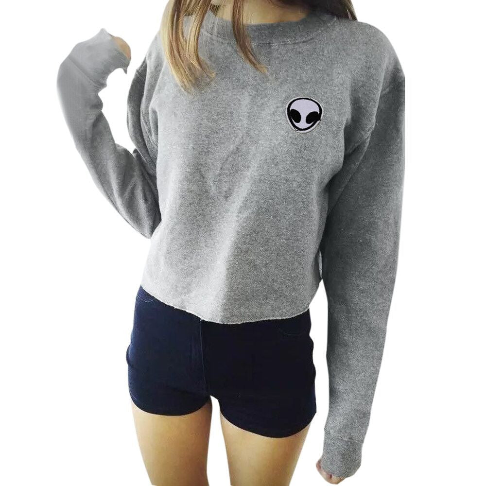 Casual blusas Women Tops Aliens Print Long Sleeve Loose Shirt Tops Blouse camisetas femme blusa feminina IMY66