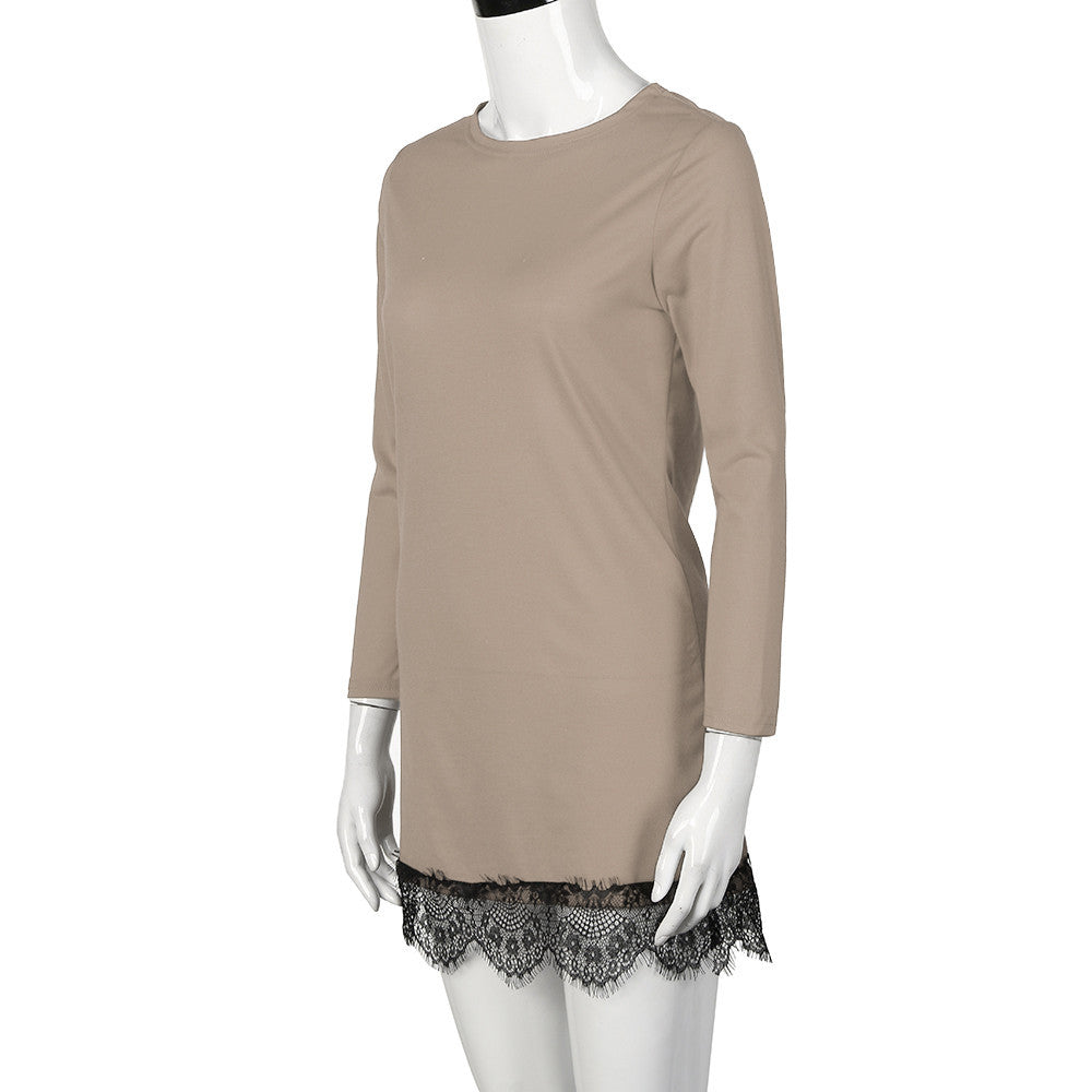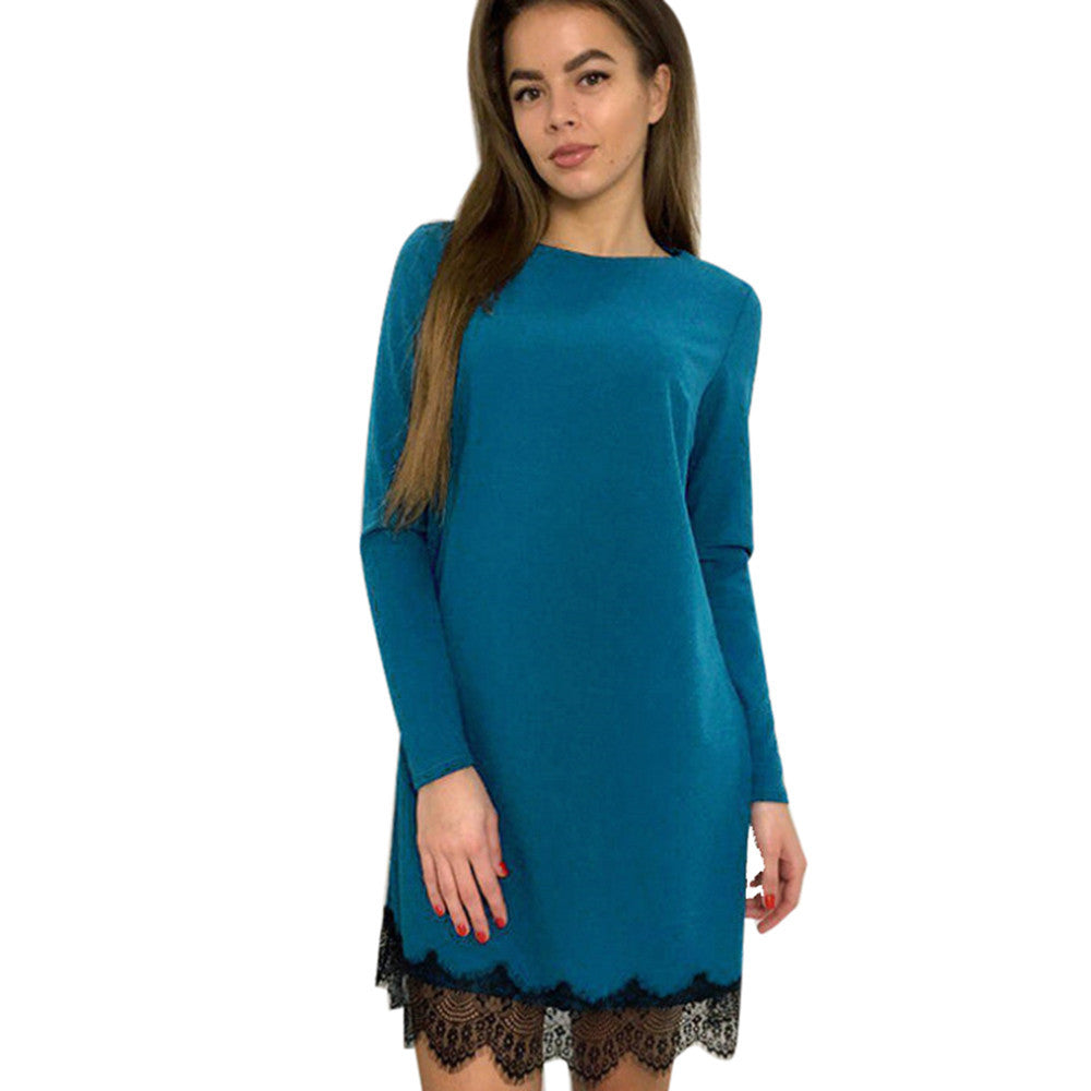Casual Dress For Women Long Sleeve Round Neck Lace Splice Party Mini Dress vestidos femininos robe IMY66