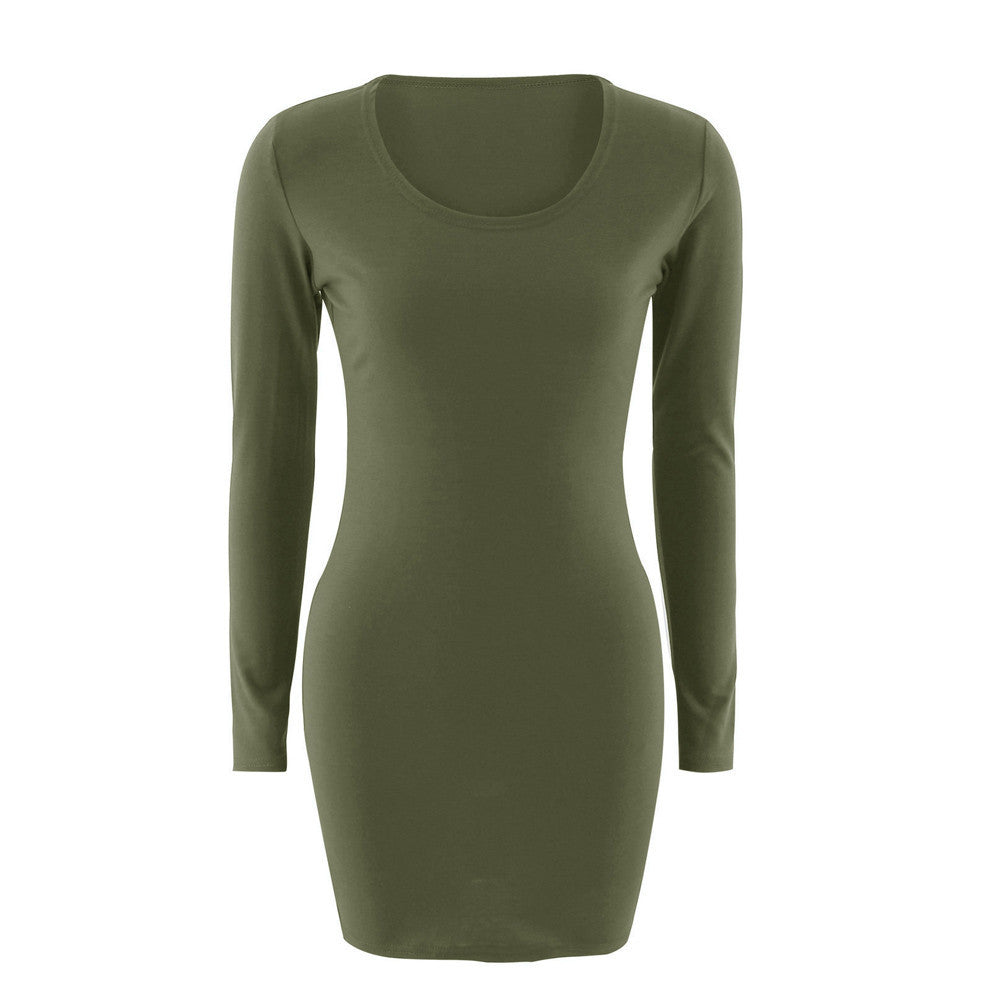 Casual Dress For Women Sexy Solid Long Sleeve Round Neck Slim Party Mini Dress Vestidos Femininos IMY66