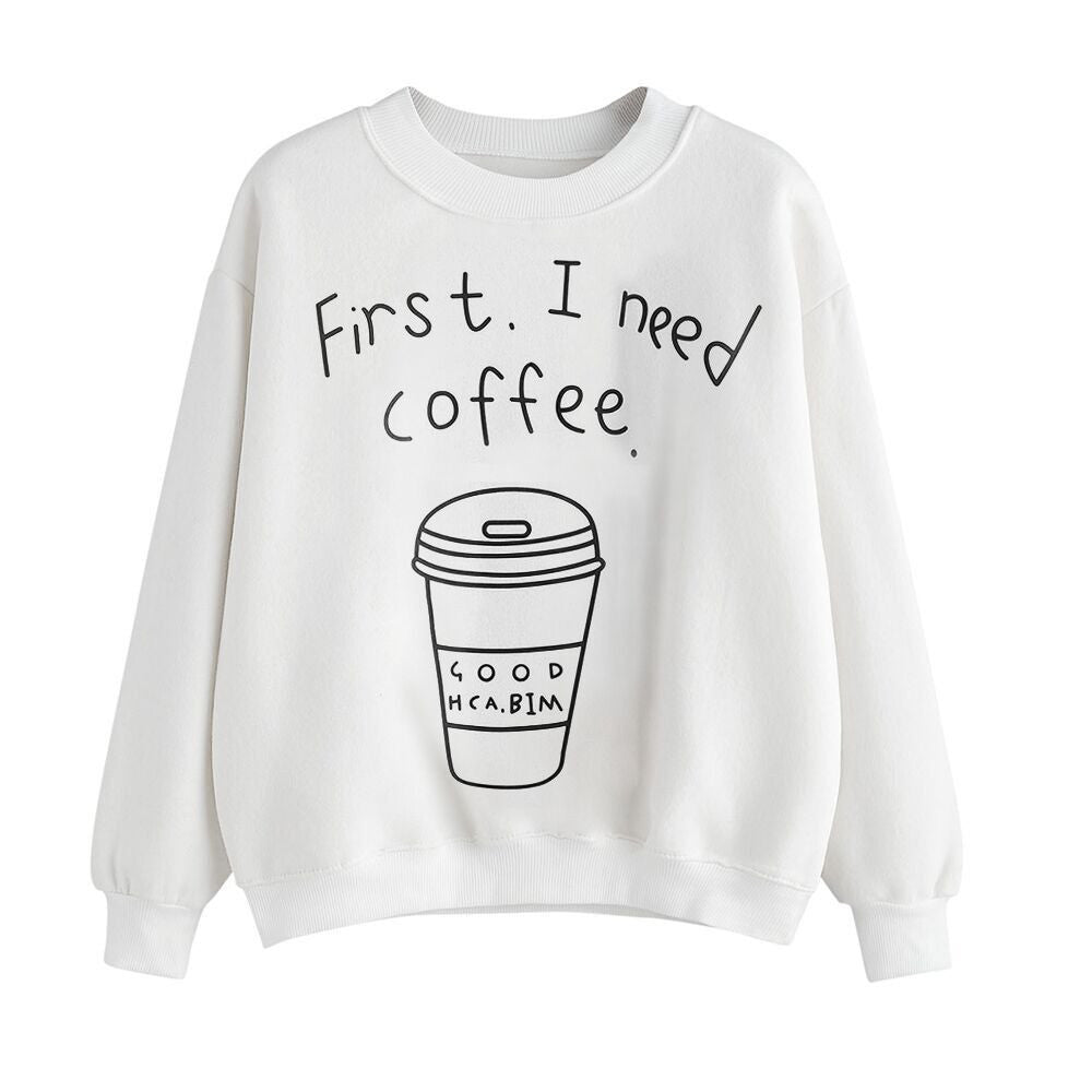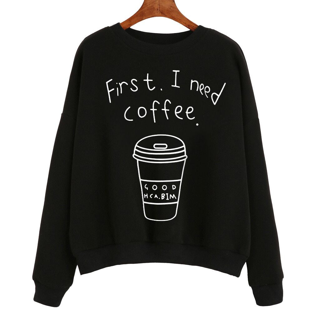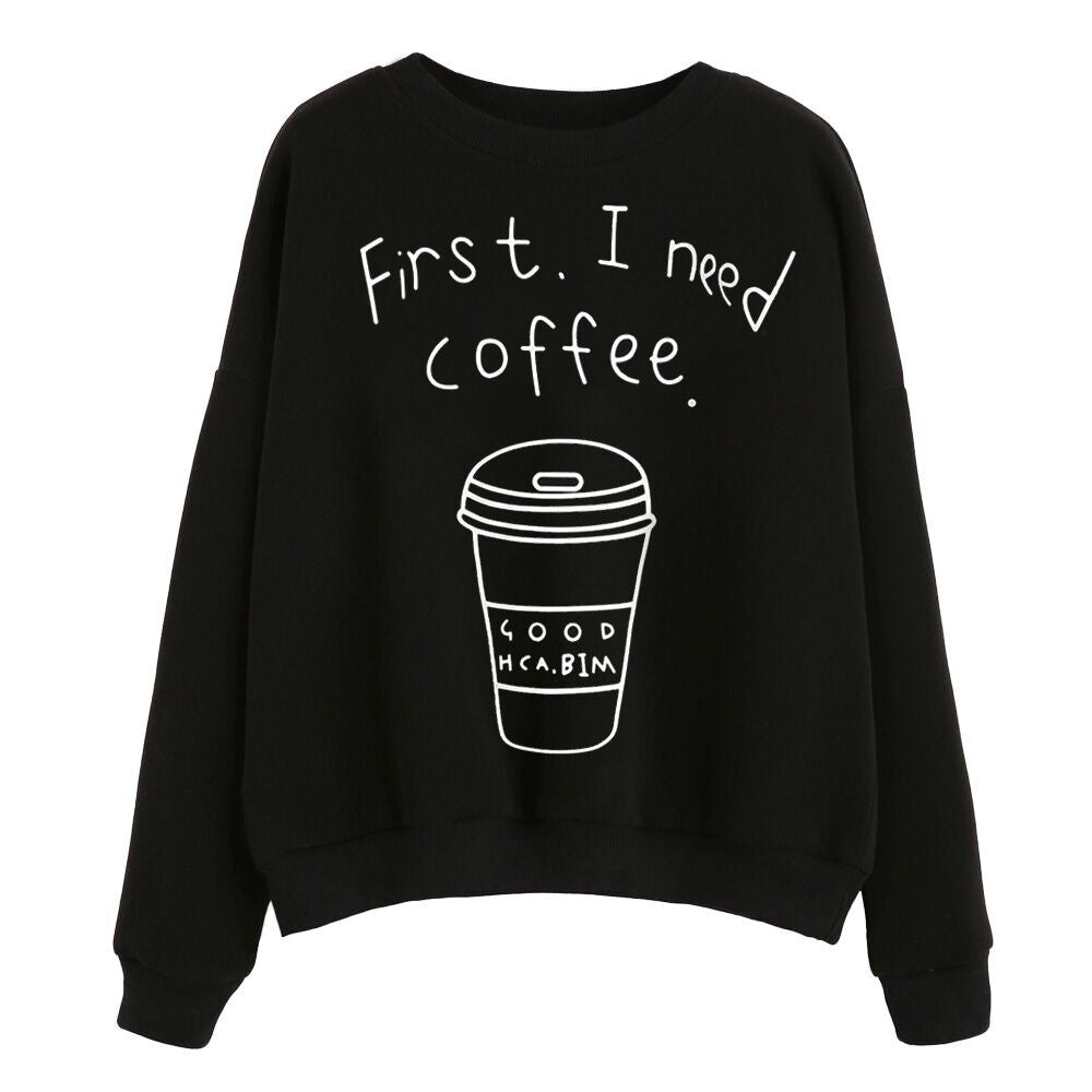 Casual T-Shirt Women First I Need Coffee long Sleeve Letter Print Sweatshirt Pullovers Tee Shirts camisetas y toP IMY66