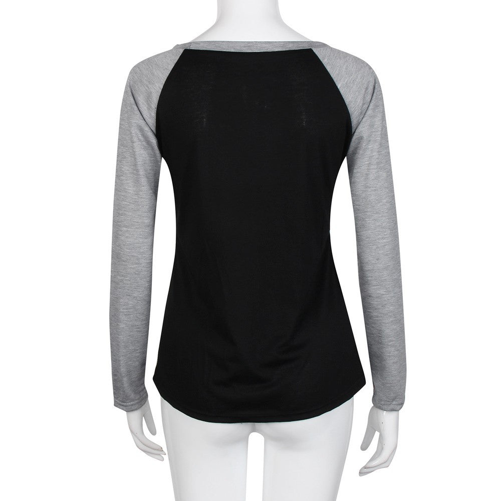 Casual T-Shirts For Women Long Sleeve Splice T-Shirt Loose Tops Tee Shirts femme camisetas y tops IMY66