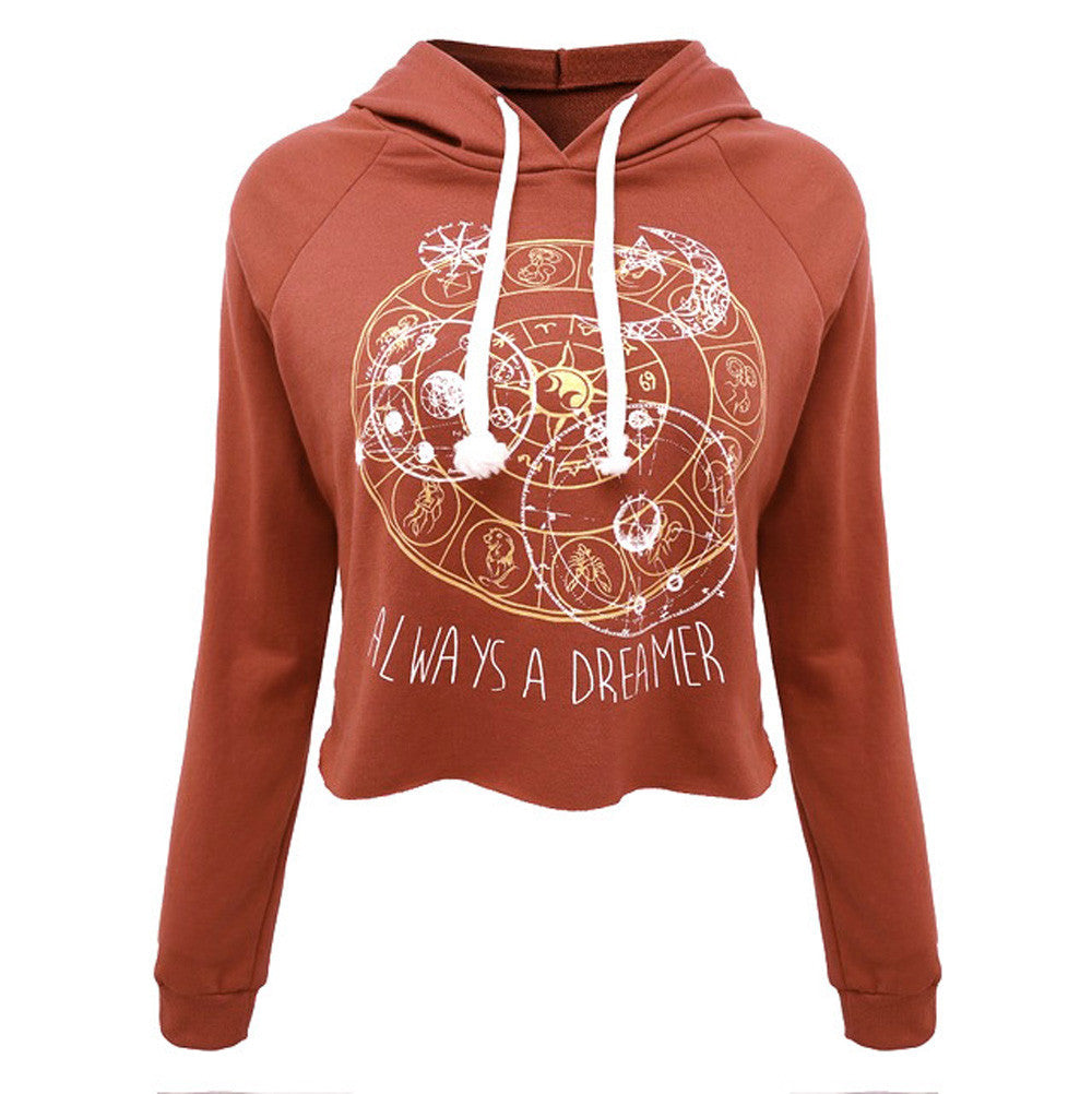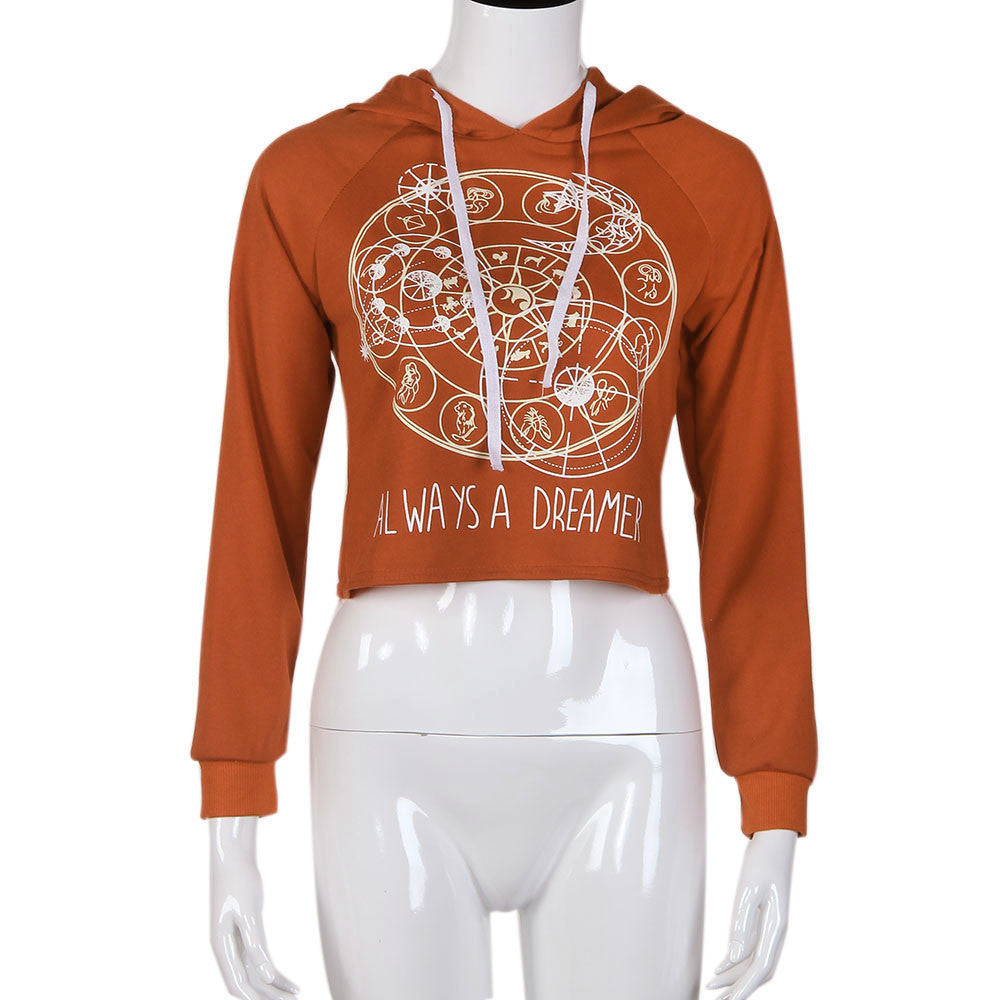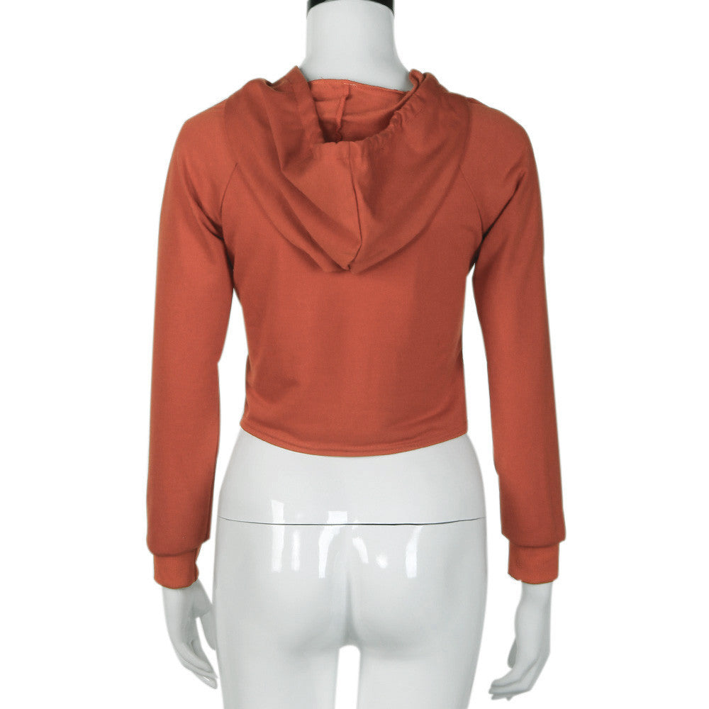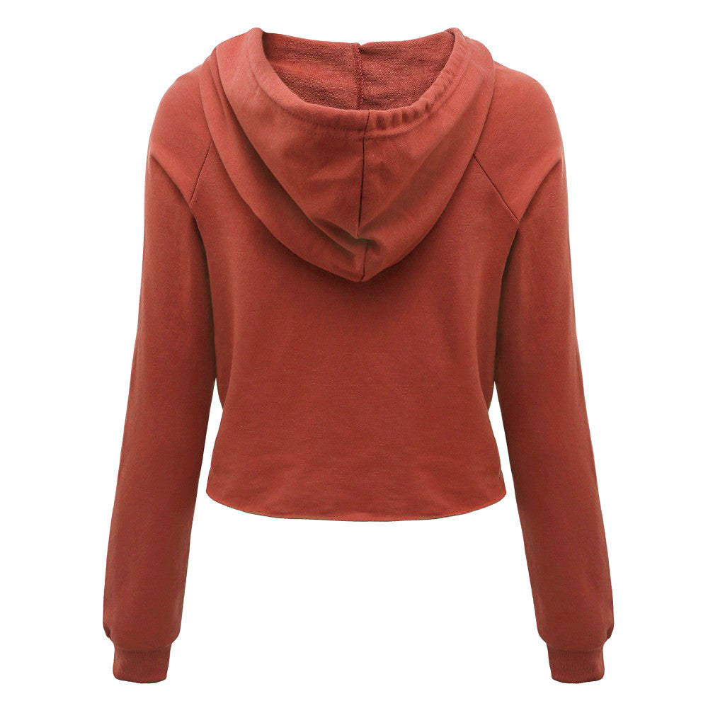 Casual Women Crop Tops T-Shirts Hooded Long Sleeve Round Neck ShorT-Shirt Womens Clothing American Apparel Best IMY66