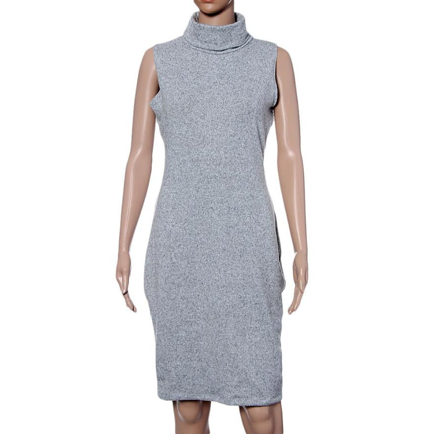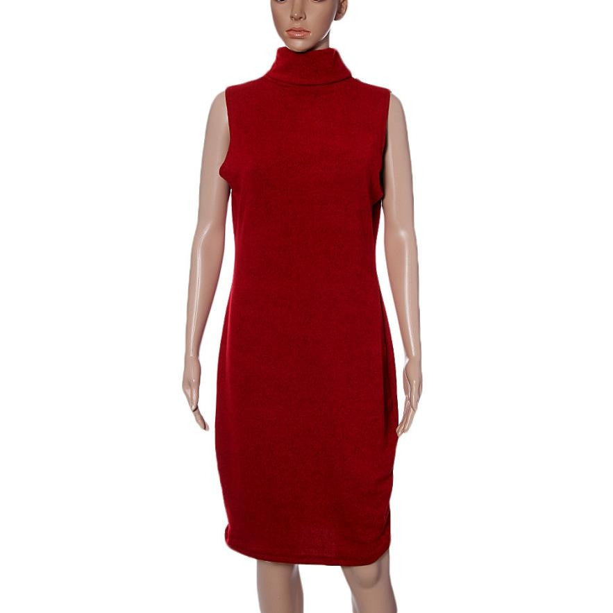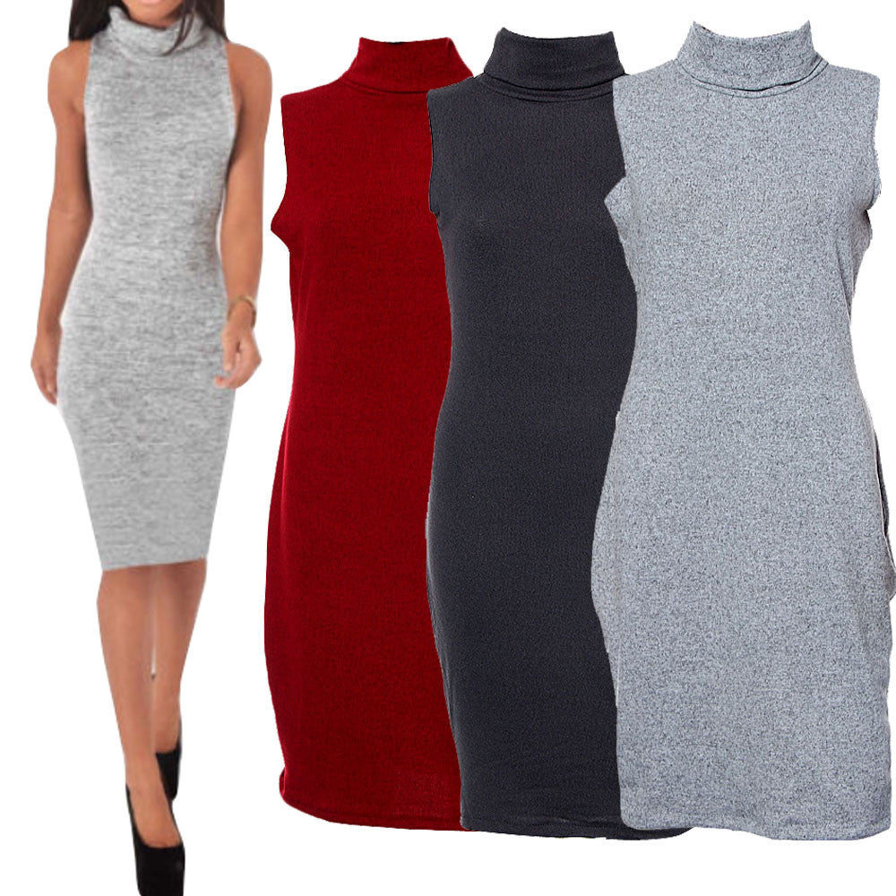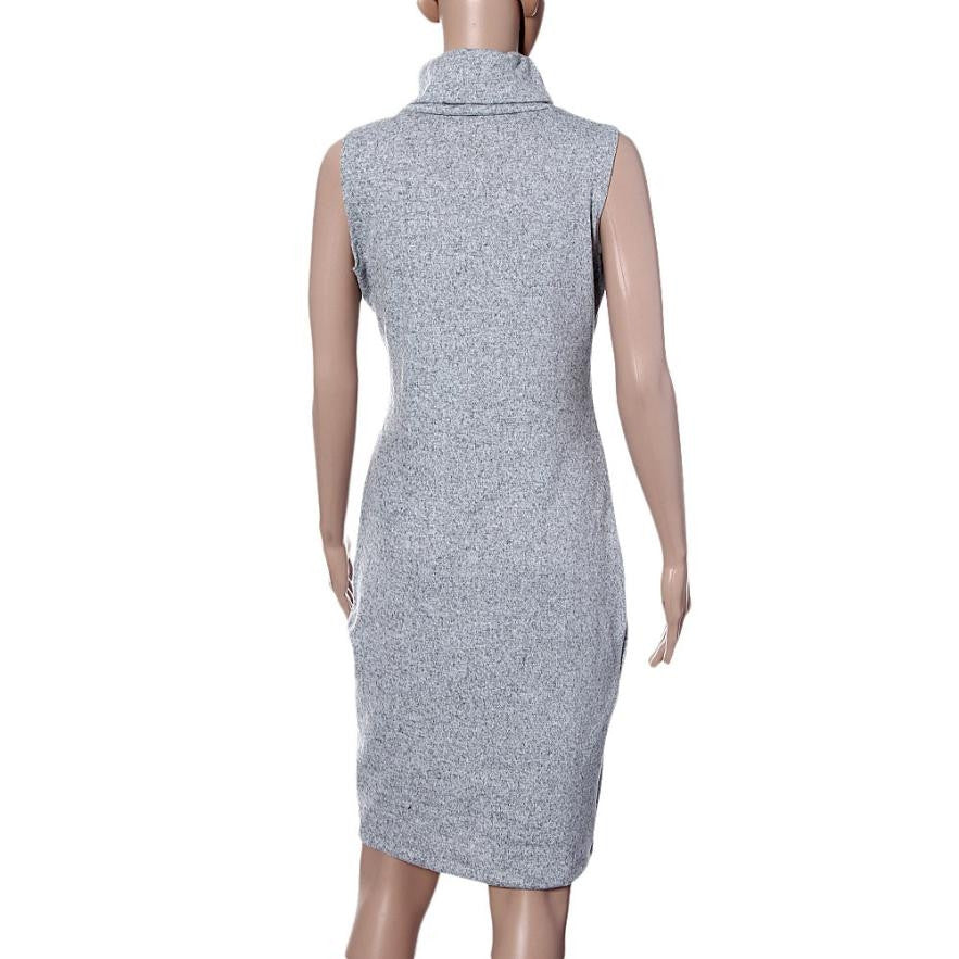 Celebrity Style Women Stretch Turtleneck Sleeveless Knitted Slim Bodycon Party Evening Midi Dress IMY66