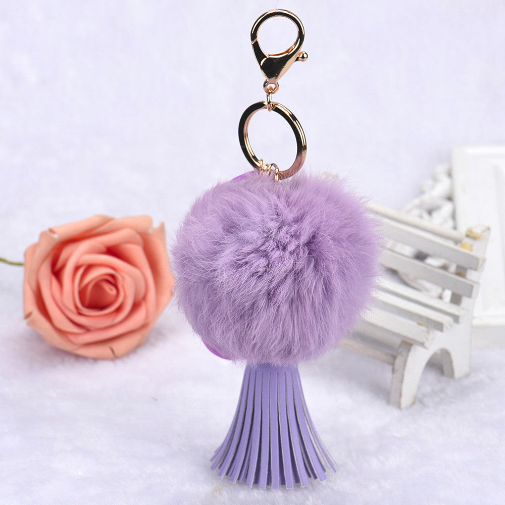 Chains Alloy Rabbit Fur Ball Keyring WithTassel Hanging Plush Ball Ornaments Car Keychains On Bag IMY66