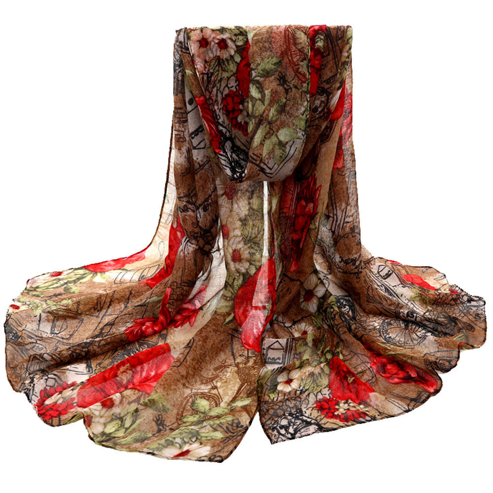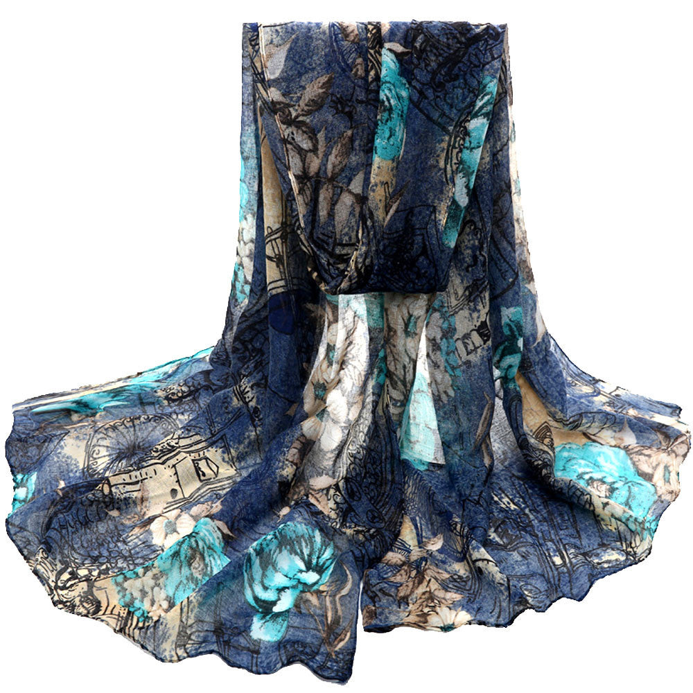 Chiffon Scarf For Women Flower Print Voile Stole Scarf Long Silk Wraps Shawl Scarves Shawls Stoles IMY66