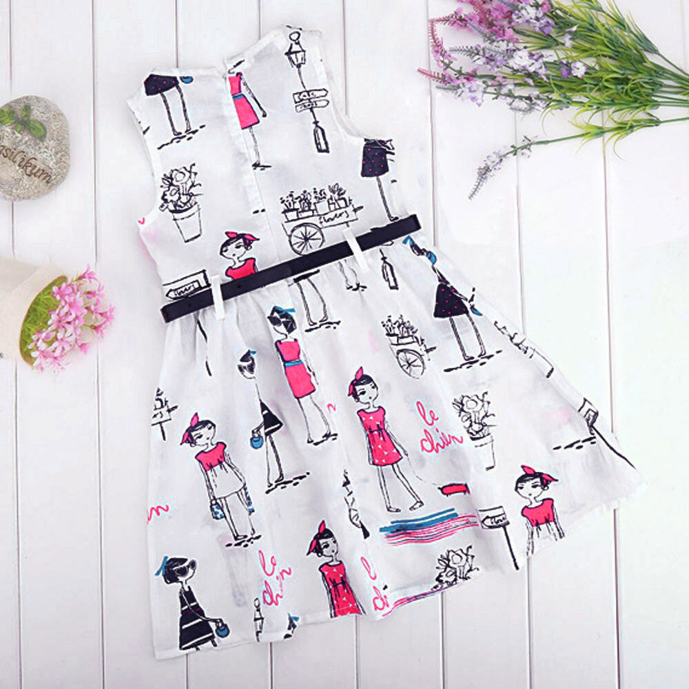 Children Girls Sleeveless Dresses With Waist Belt Cotton Kids Dresses For Girls Graffiti Dress vestidos IMY66