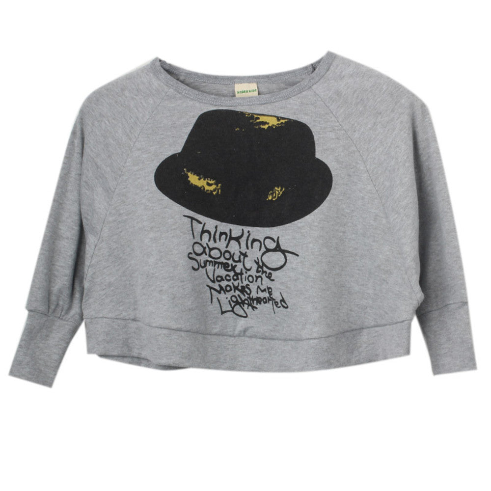 Children's T-Shirts Kids Girls Hat Pattern Long Sleeve Bat Wing Loose Blouse T-Shirt Tops Clothing For Girls IMY66
