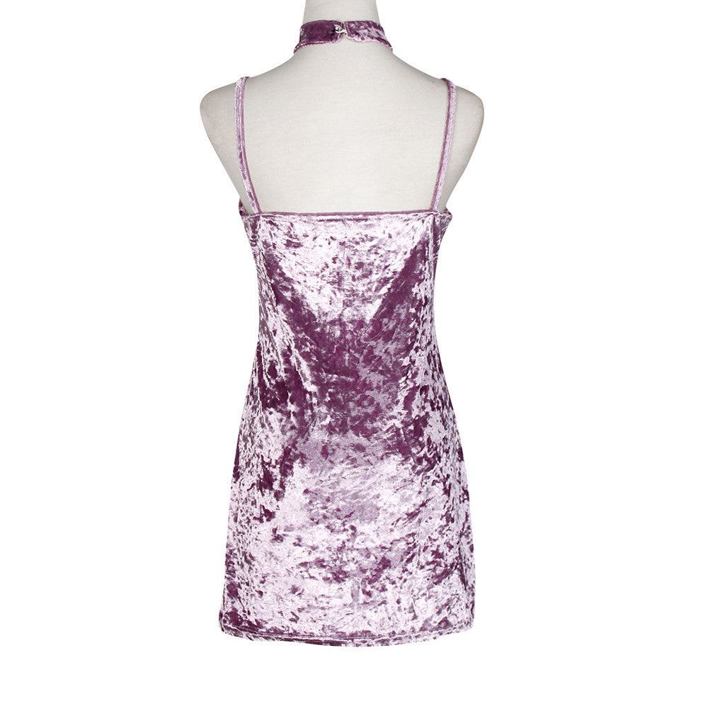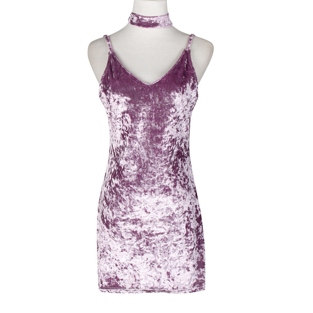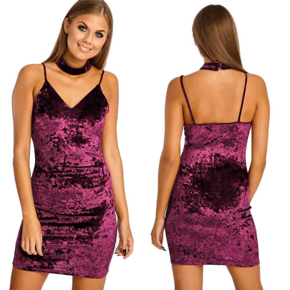 Choker Dress Women Spaghetti Strap Backless Bodycon V Neck Shiny Velvet Dress Party Mini Dress vestido de festa IMY66