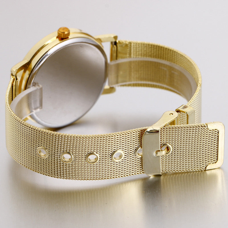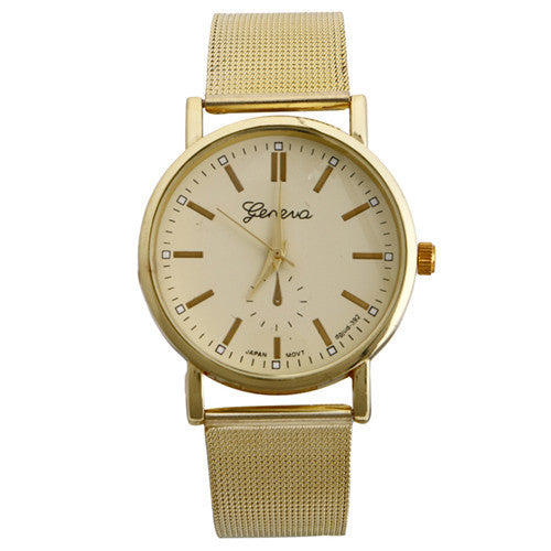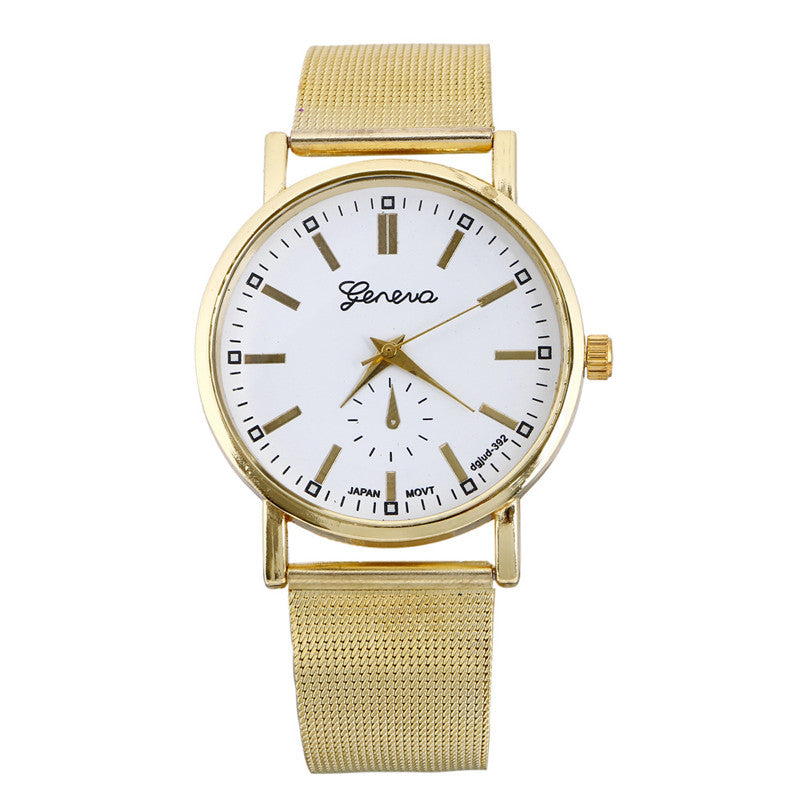 Classic Men Watch Business Geneva Golden Stainless Steel Mesh Band Quartz Wrist Watch Relogios masculino IMY66