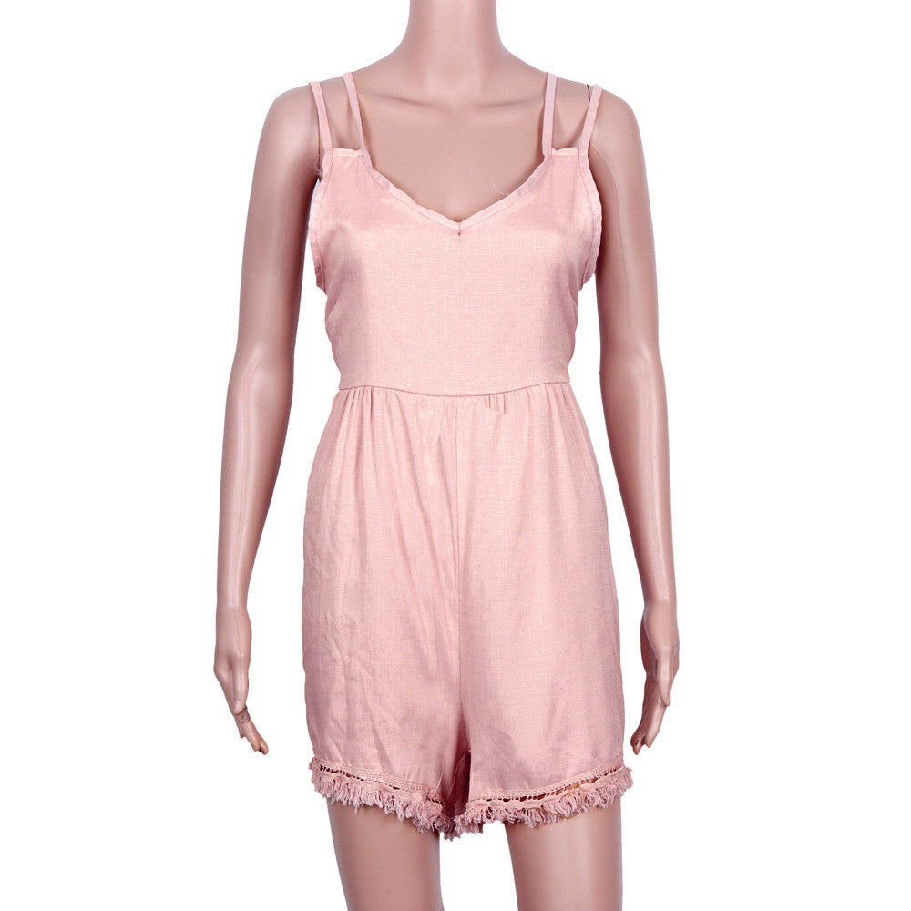 Combishort Femme Loose Short Jumpsuit Sexy Backless Deep V-neck Double Spaghetti Playsuit Rompers Womens Jumpsuit IMY66