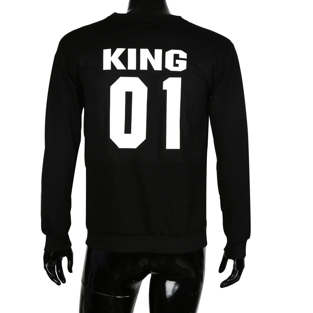 Coulple T-Shirts KING 01 QUEEN 40 Letter Print Long Sleeve Tee Shirt Tops Lovers Shirt Blusas Femininas IMY66