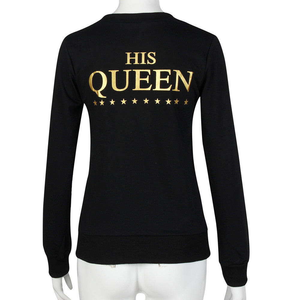 Couple Lover T-Shirts HIS Queen Letter Print Tops Long Sleeve Tee Shirts femme Sweater Blusas Femininas IMY66