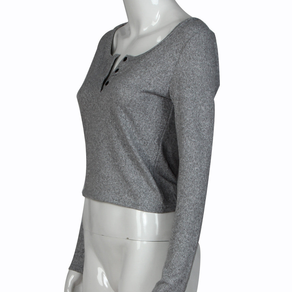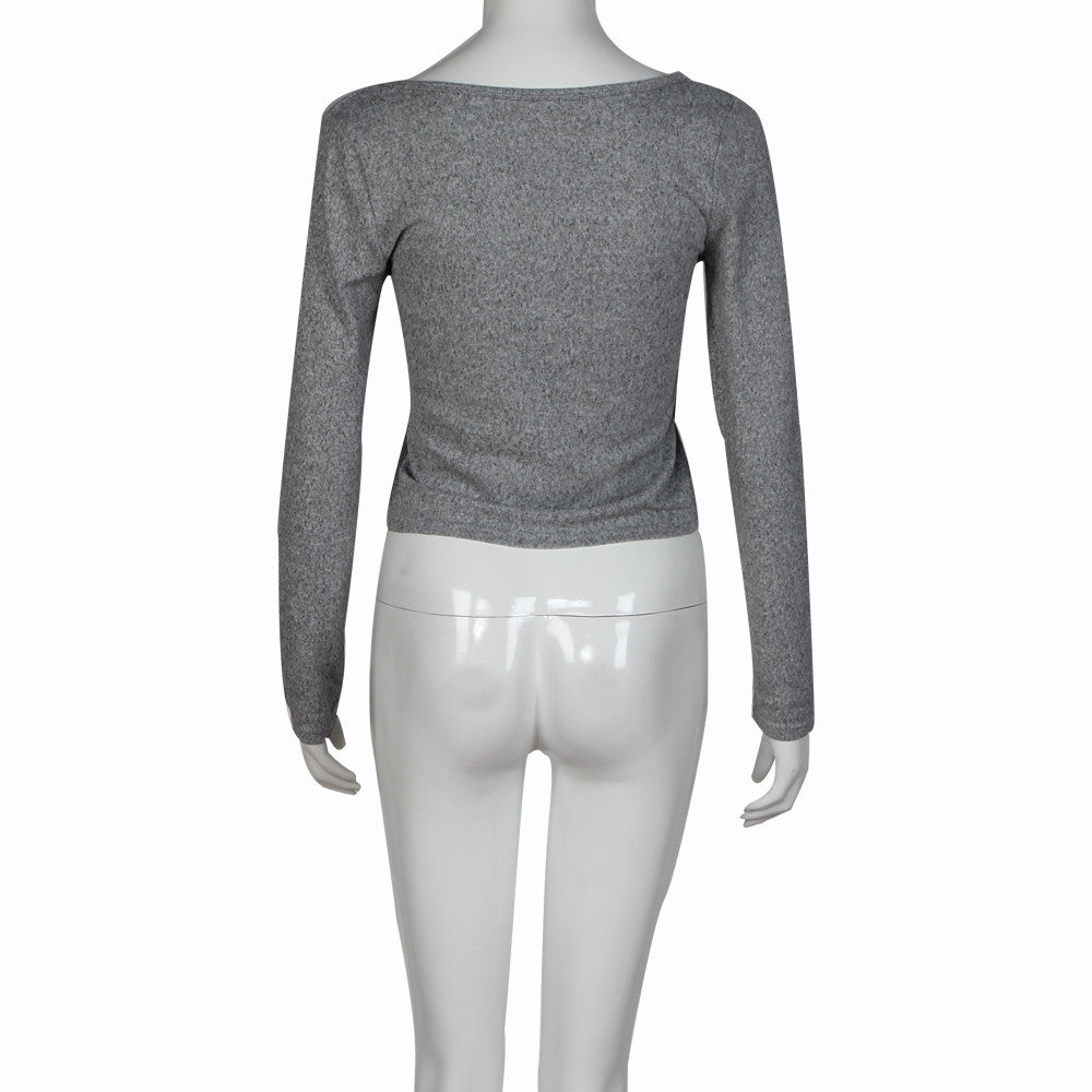 Crop Tops For Womens Lady Sexy V Neck Long Sleeve Shirt Casual Stretch Tops T-Shirt Tee Shirts femme IMY66