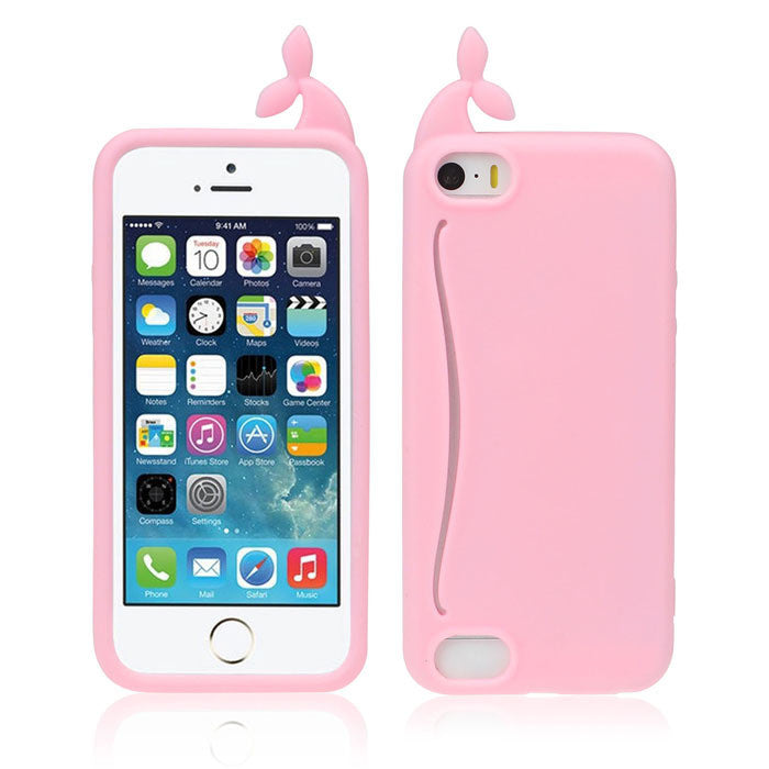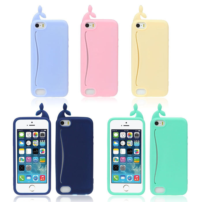 Cute Big Mouth Whale Rubber Card Holder Soft Case Cover For iPhone 5 5S IMY66