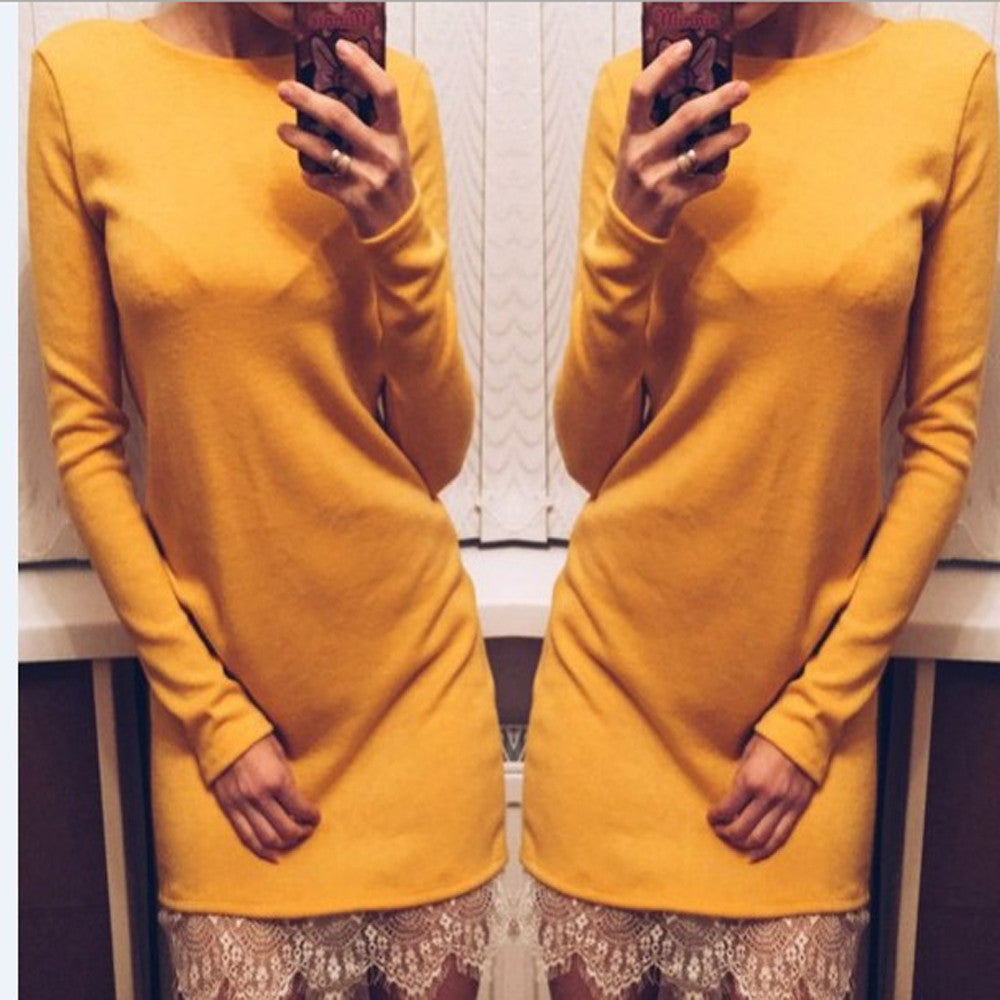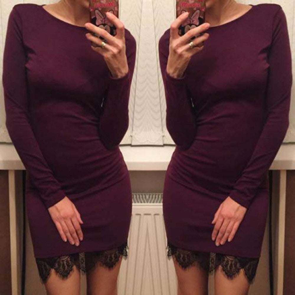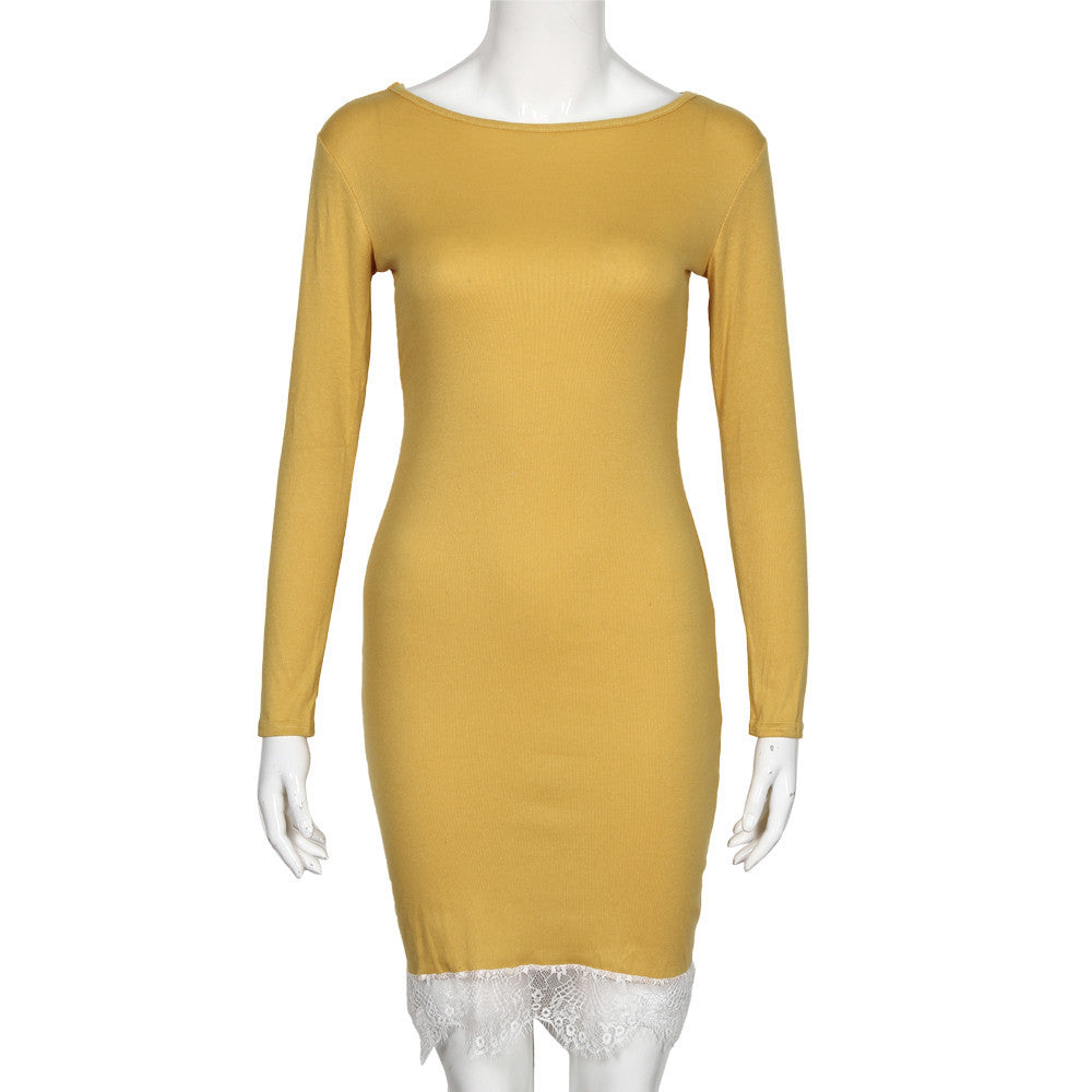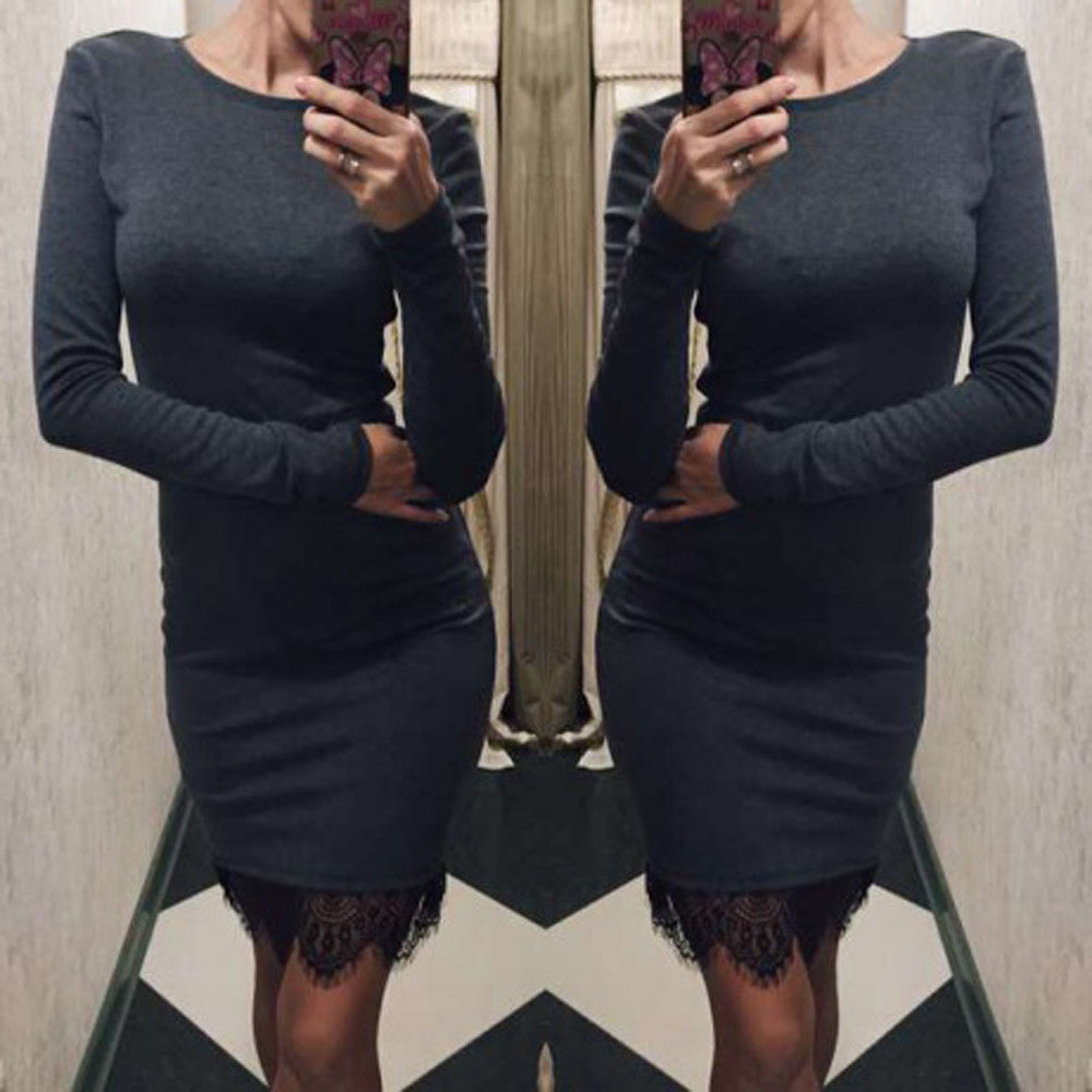 Dress For Women Casual Long Sleeve Lace Stitching Bottoming Sheath Tops Bodycon Dress vestidos femininos IMY66