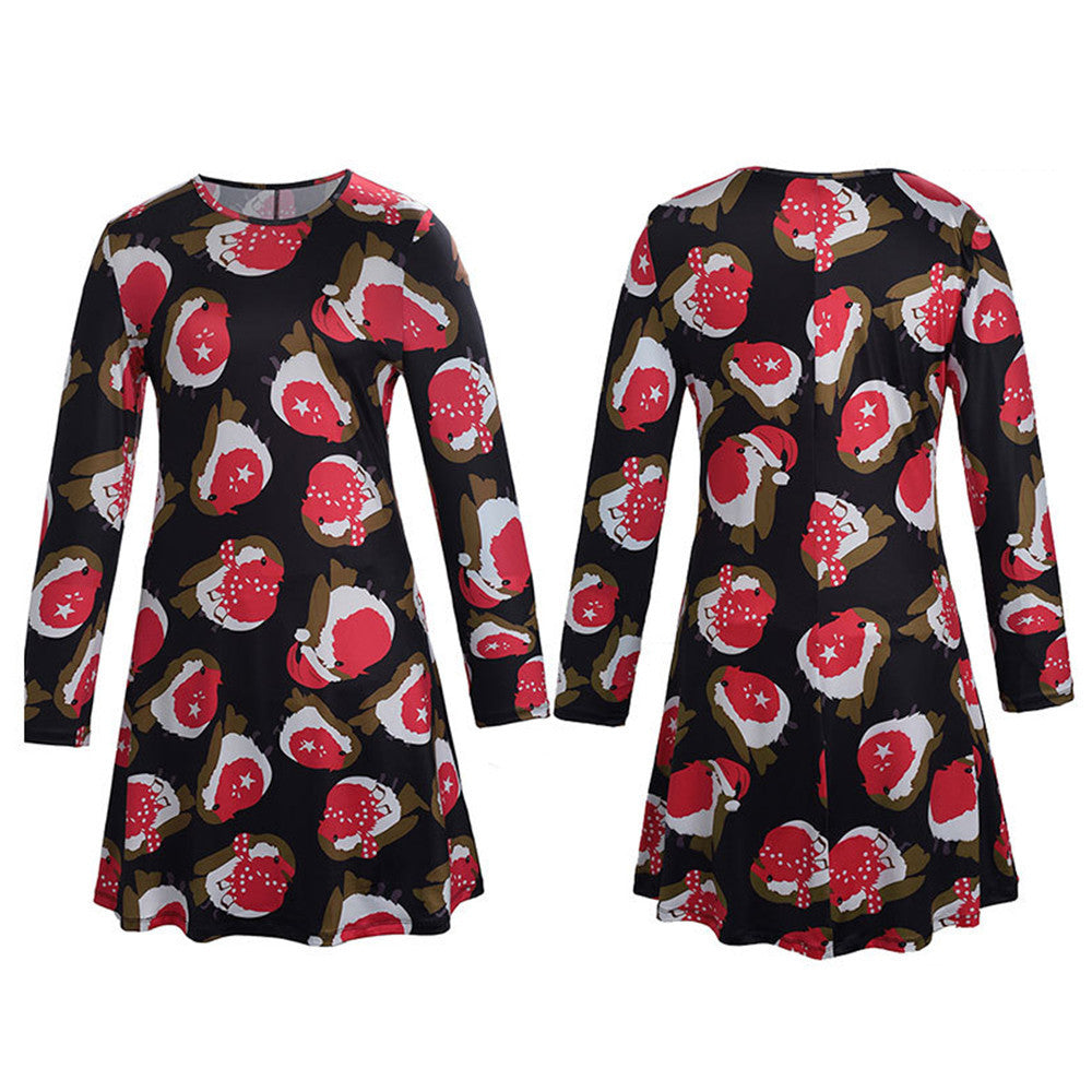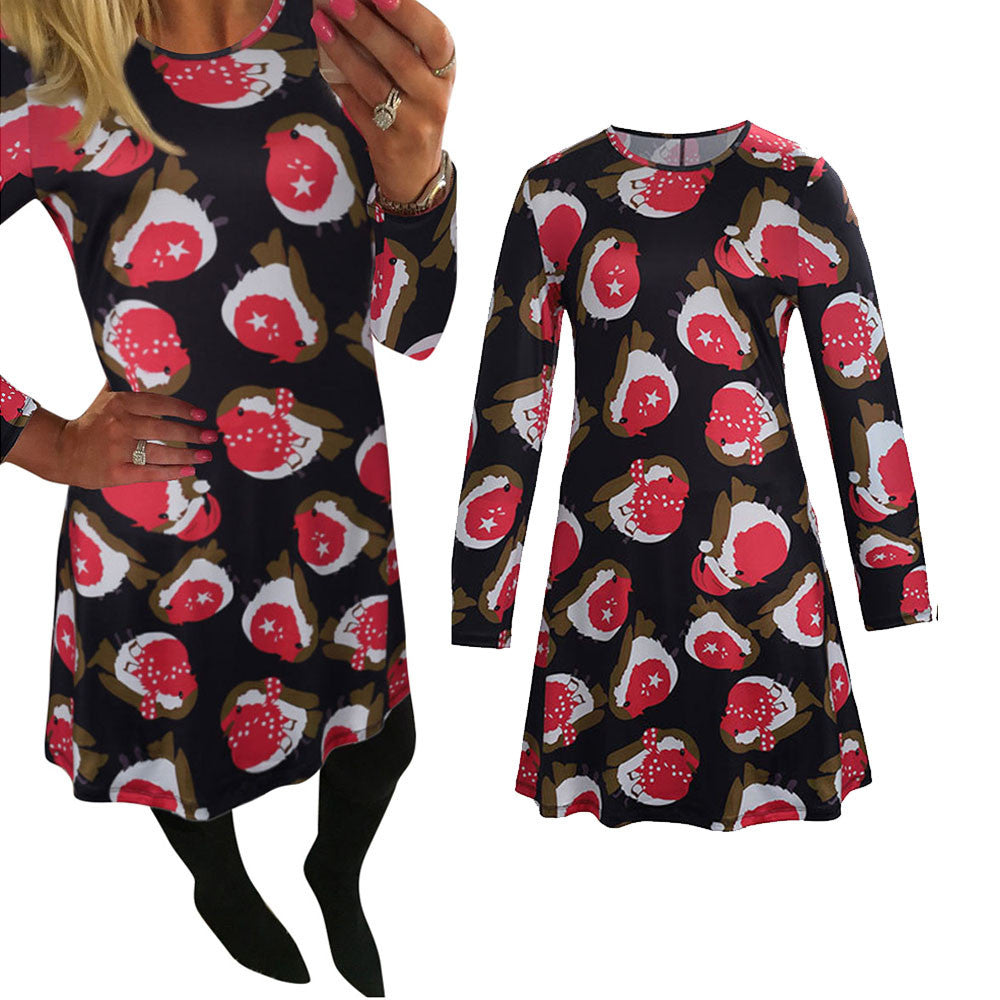 Dress For Women Print Swing Dress Long Sleeve Flared Party Mini Dresses vestidos de festa IMY66