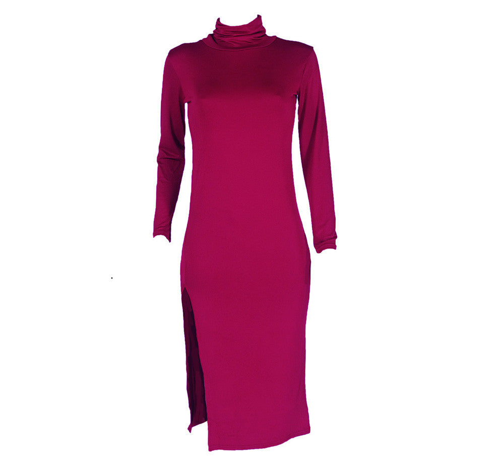 Dress For Women Sexy Open Fork Turtleneck Long Sleeve Bandage Bodycon Knee-Length Dress vestidos femininos IMY66