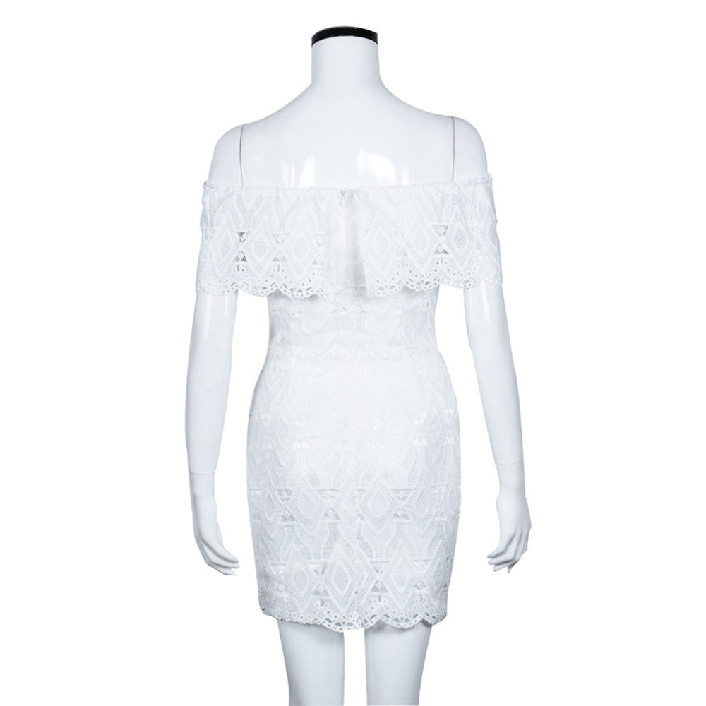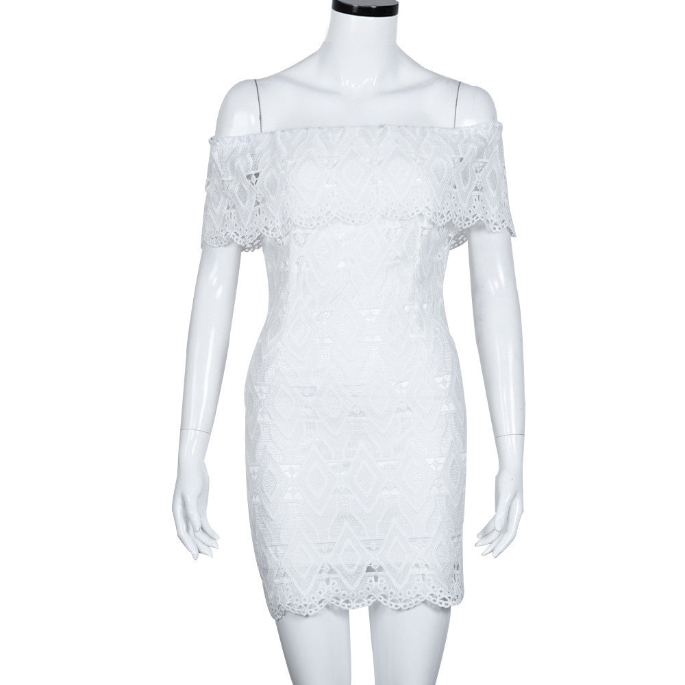 Dress Off Shoulder White Lace dress Casual Hollow Floral Dresses For Women vestidos femininos Black&White IMY66