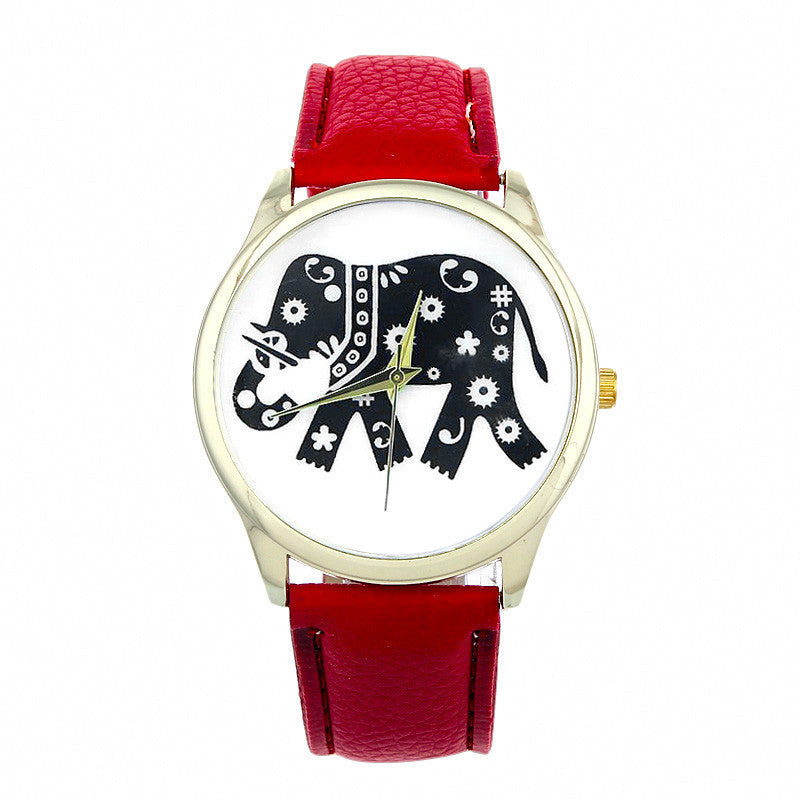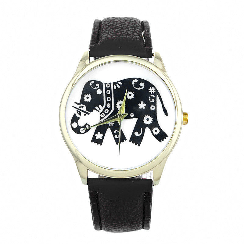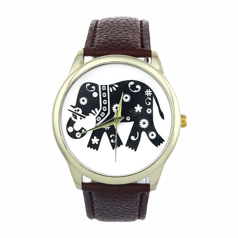 Dress Watches For Women Elephant Printing Pattern Weaved PU Leather Quartz Watch Clocks Hours relogio feminino IMY66