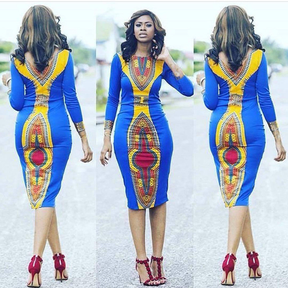 Dress Women Casual Long Sleeve African Print Dress Sexy Print Kaftan Sheath Dress vestidos femininos IMY66