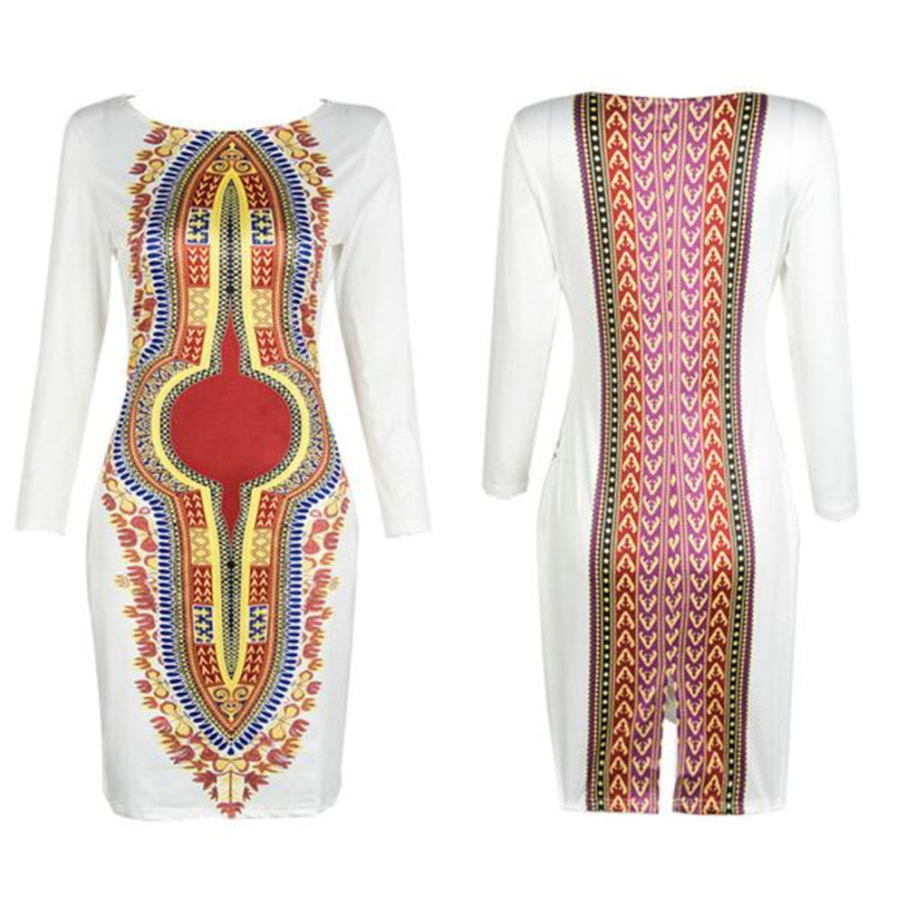 Dress Women Casual O-Neck Dresses Traditional African Print Party Long Maxi Slim Dress vestidos femininos IMY66