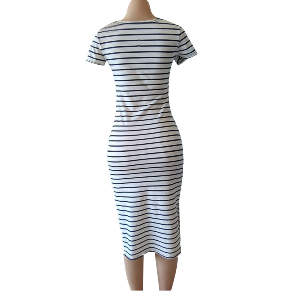 Dress Women Casual Short Sleeve Striped Long Party Sheath Dress Women Clothing Dress Vestidos femininos Plus Size IMY66