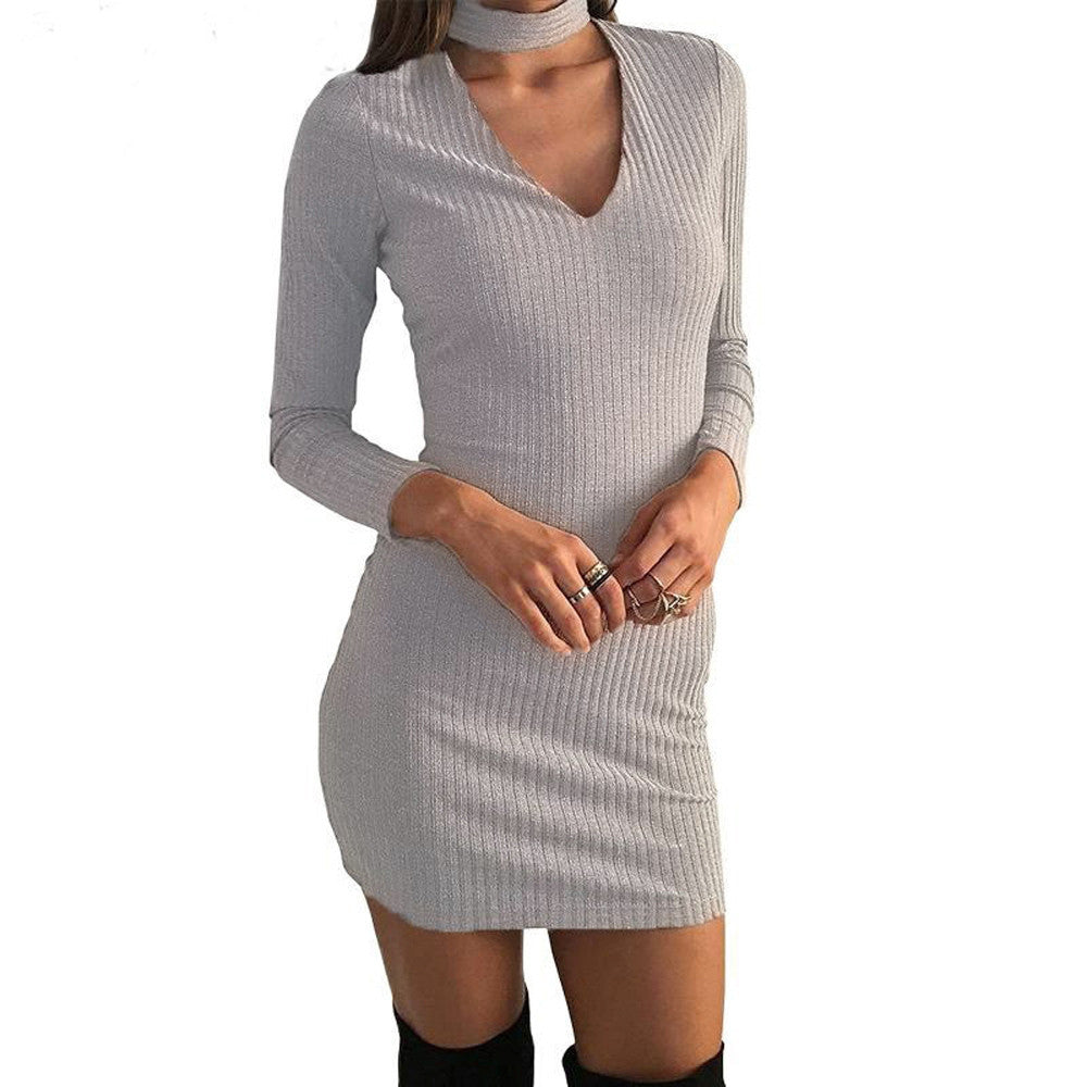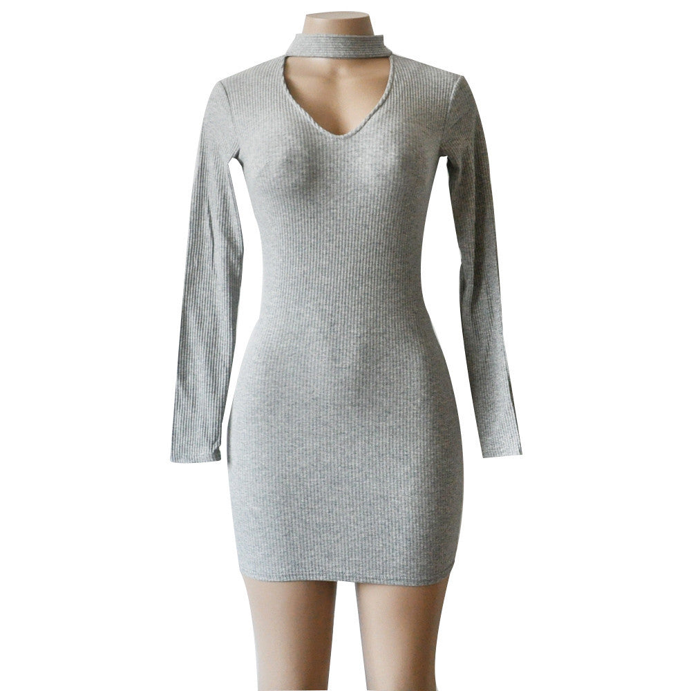Dress Women Long Sleeve Sexy Party Knitted Dress Casual Bodycon Dress Vestidos Sweater Dresses Vestidos femininos IMY66