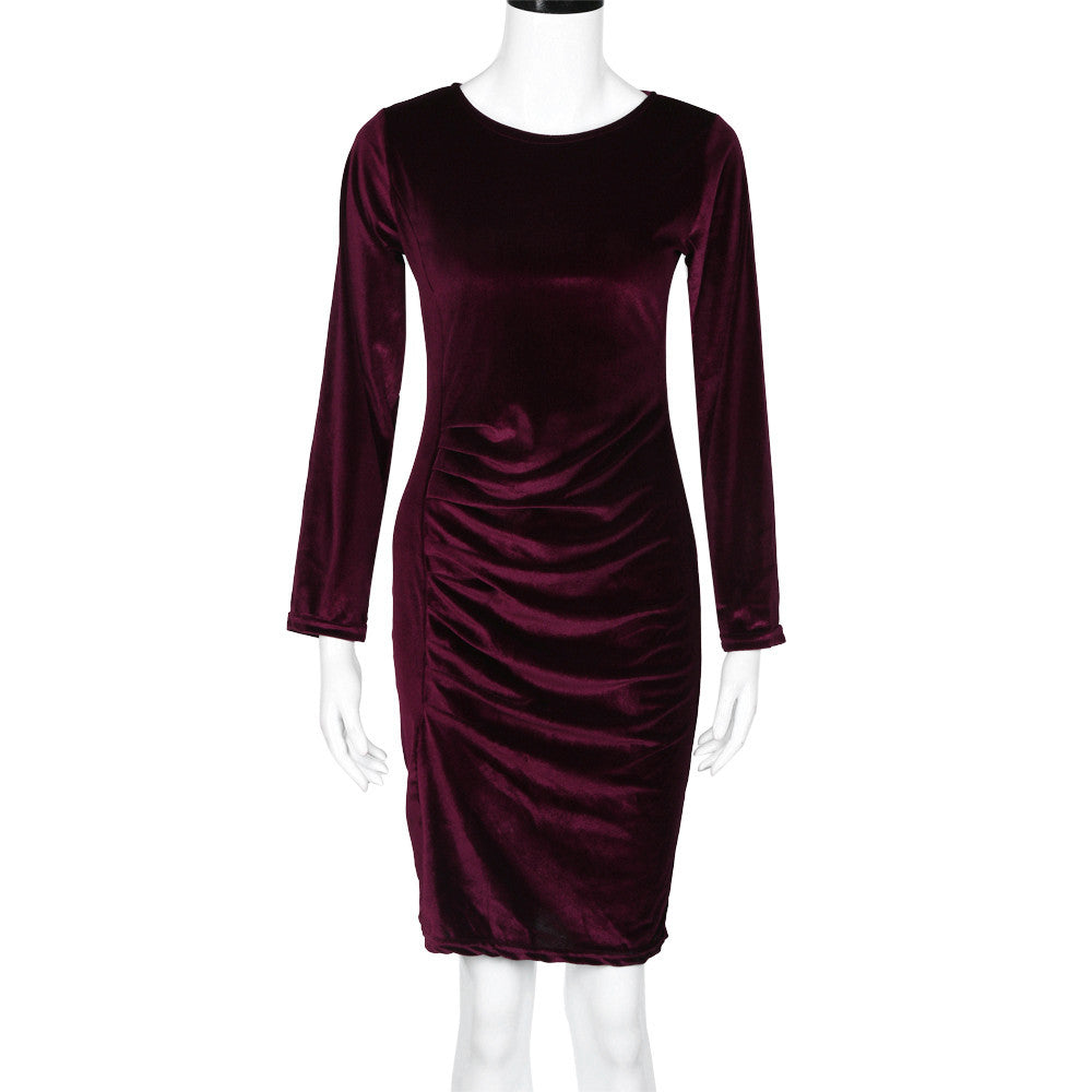 Dress Women Velvet Dress Casual Long Sleeve Bodycon Elegant Dress Evening Party Mini Dress vestidos femininos IMY66