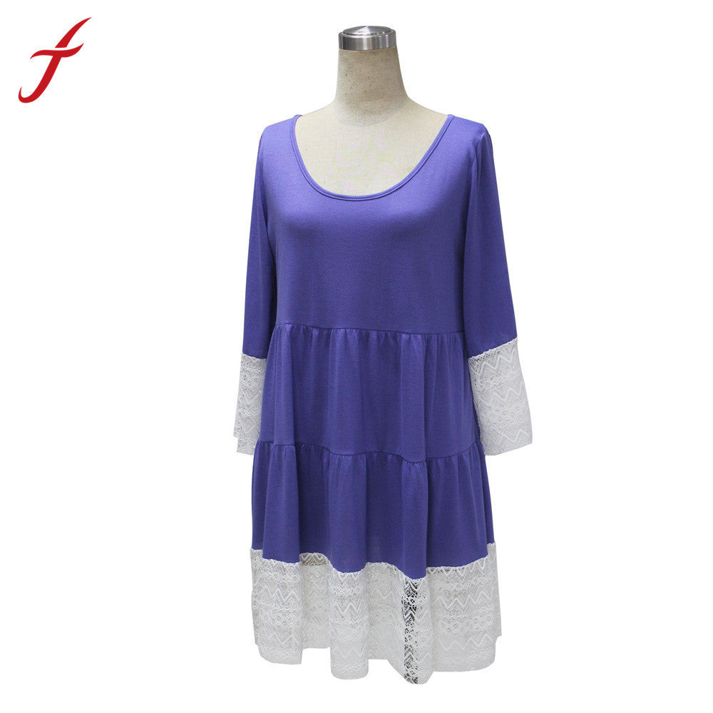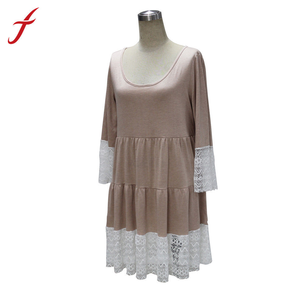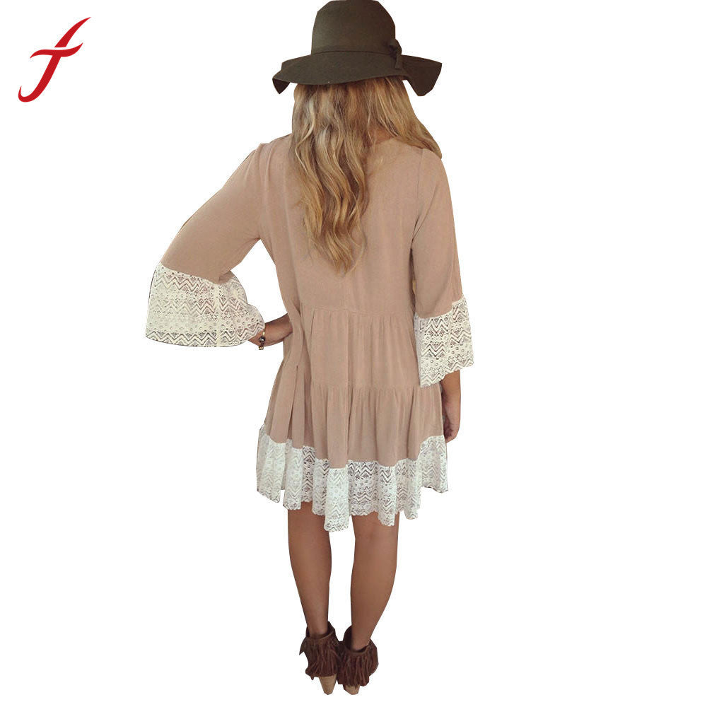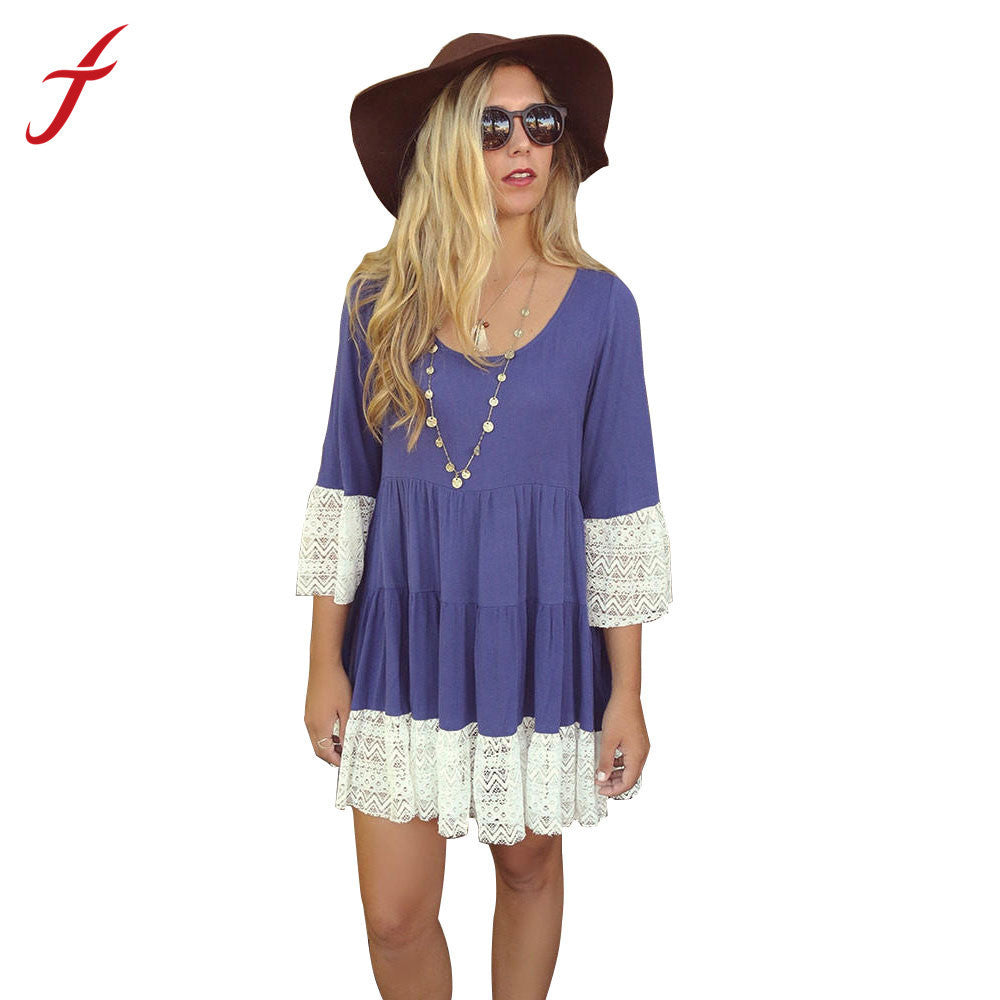Dresses For Women Casual Half Sleeve Lace Splice O Neck Loose And Comfortable Mini Dress vestidos femininos IMY66
