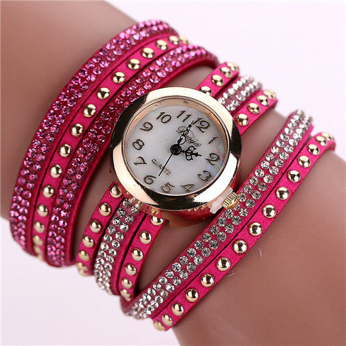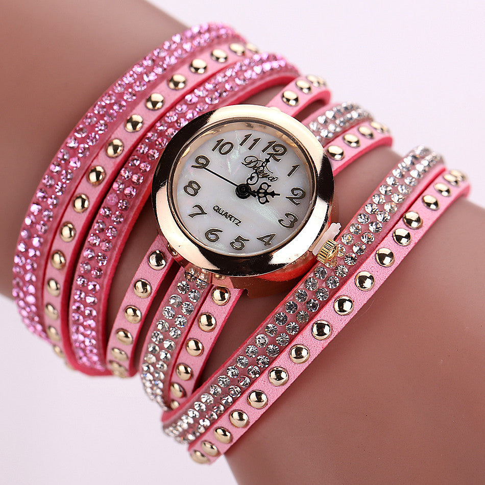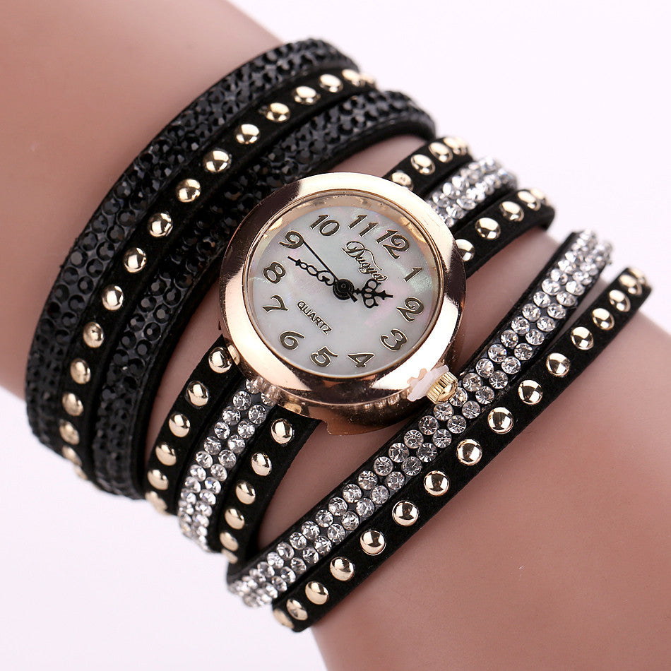 Duoya Casual Bracelet Watches Women Ladies PU Leather Band Rhinestone Quartz Wrist Watches Relogio feminino IMY66
