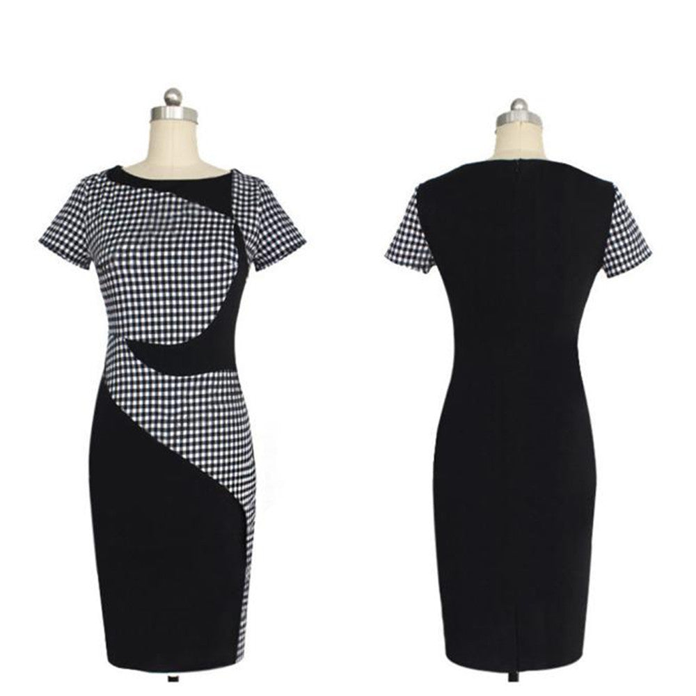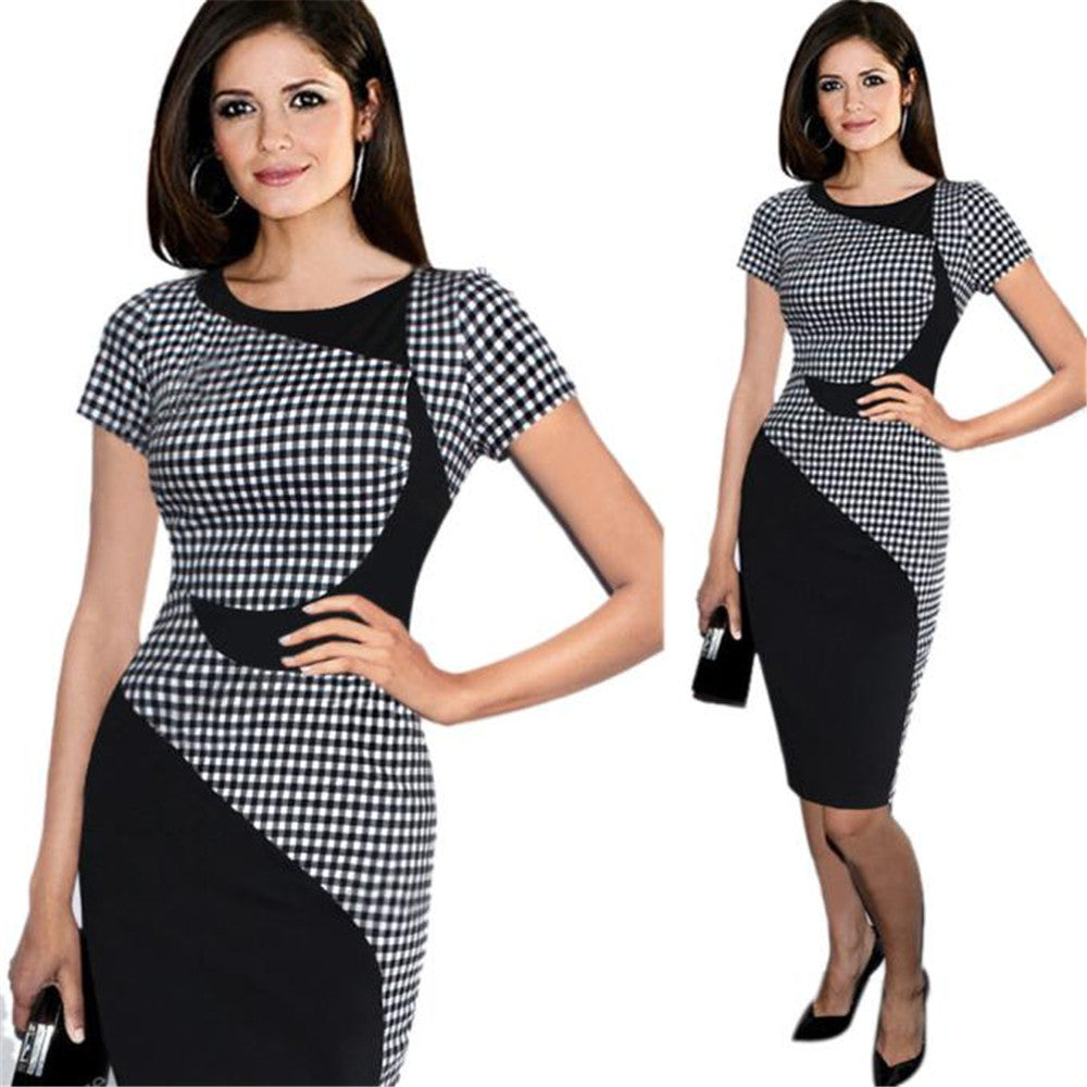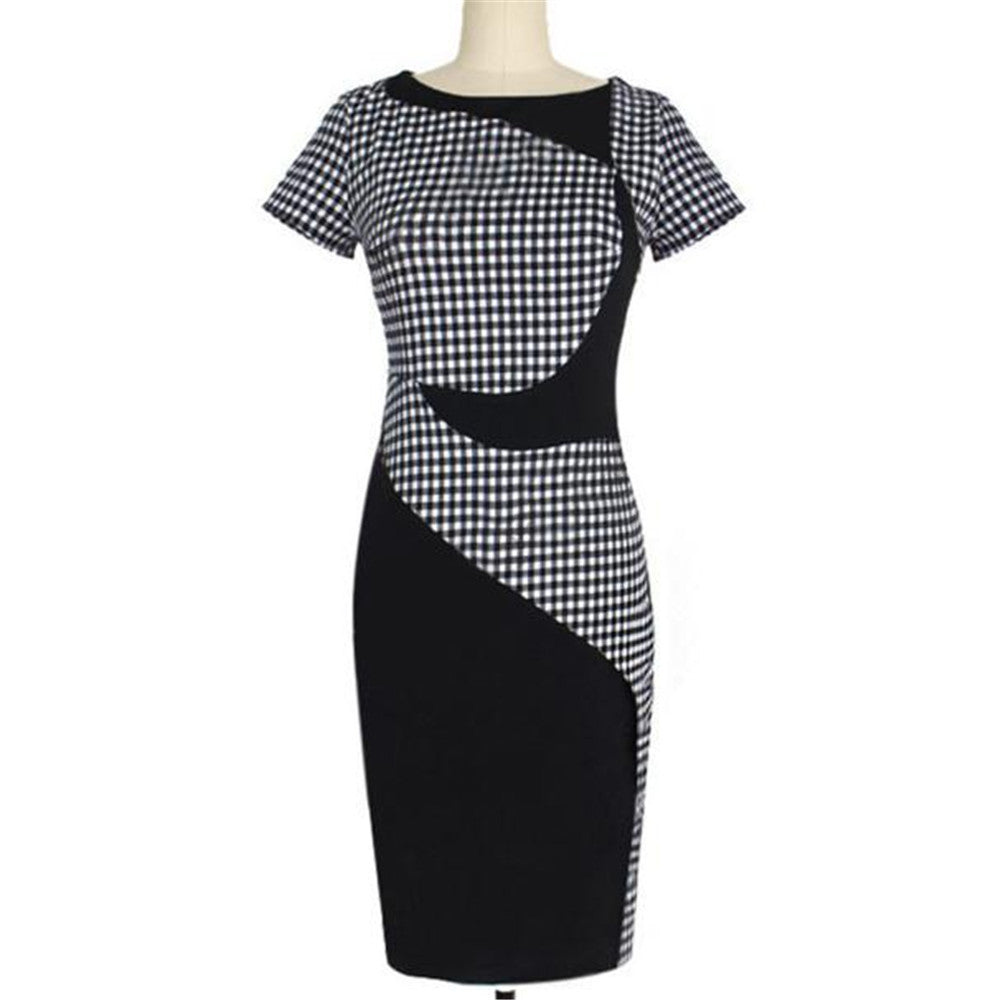 Elegant Bodycon Dress For Women Sexy Plaid Knee-Length Short Sleeve Office Party Pencil Sheath Dresses vestidos feminino IMY66