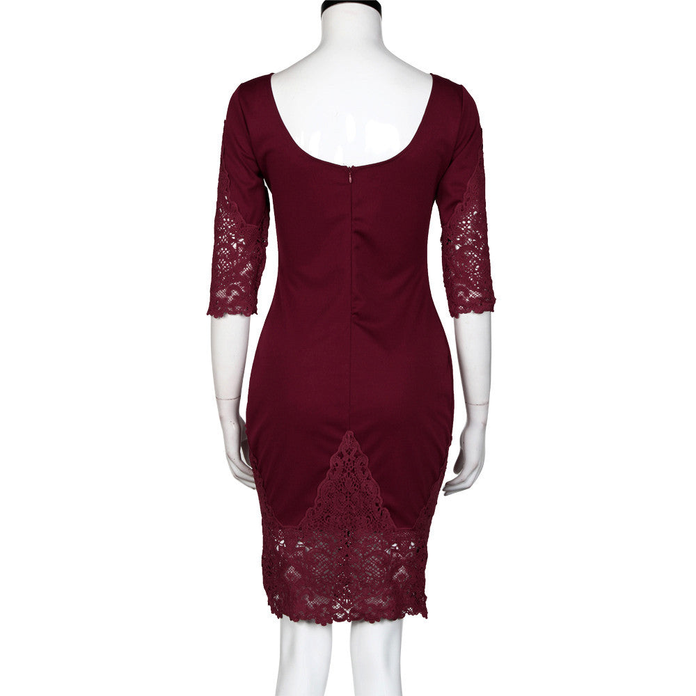 Elegant Women Dress Sexy Backless Lace Splice Half Sleeve Party Short Mini Dress vestidos de festa Black&Red IMY66