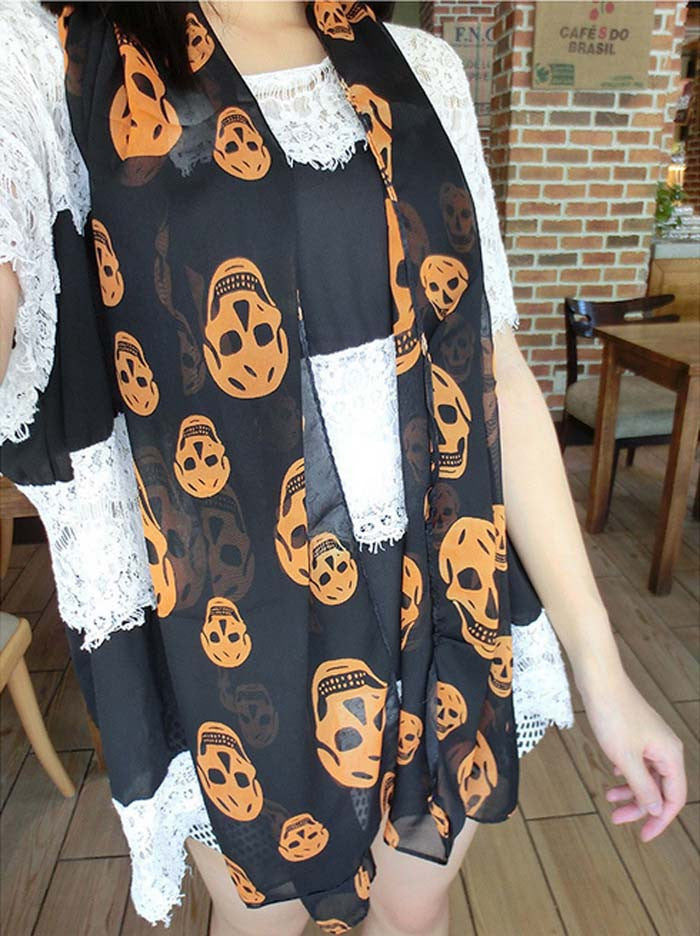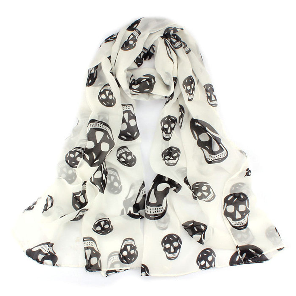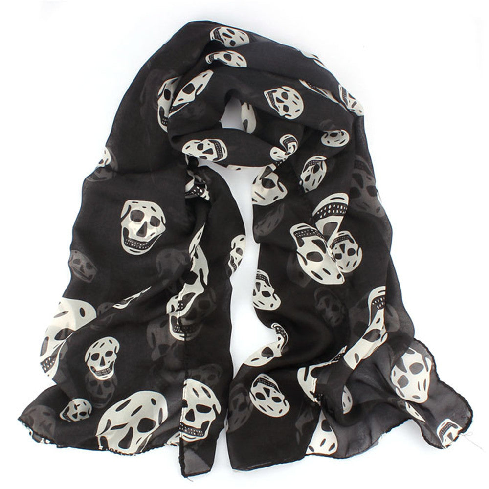 Elegant Womens Silk Scarves Chiffon Skull Print Scarf Shawl for Women lencos e echarpes femininos IMY66