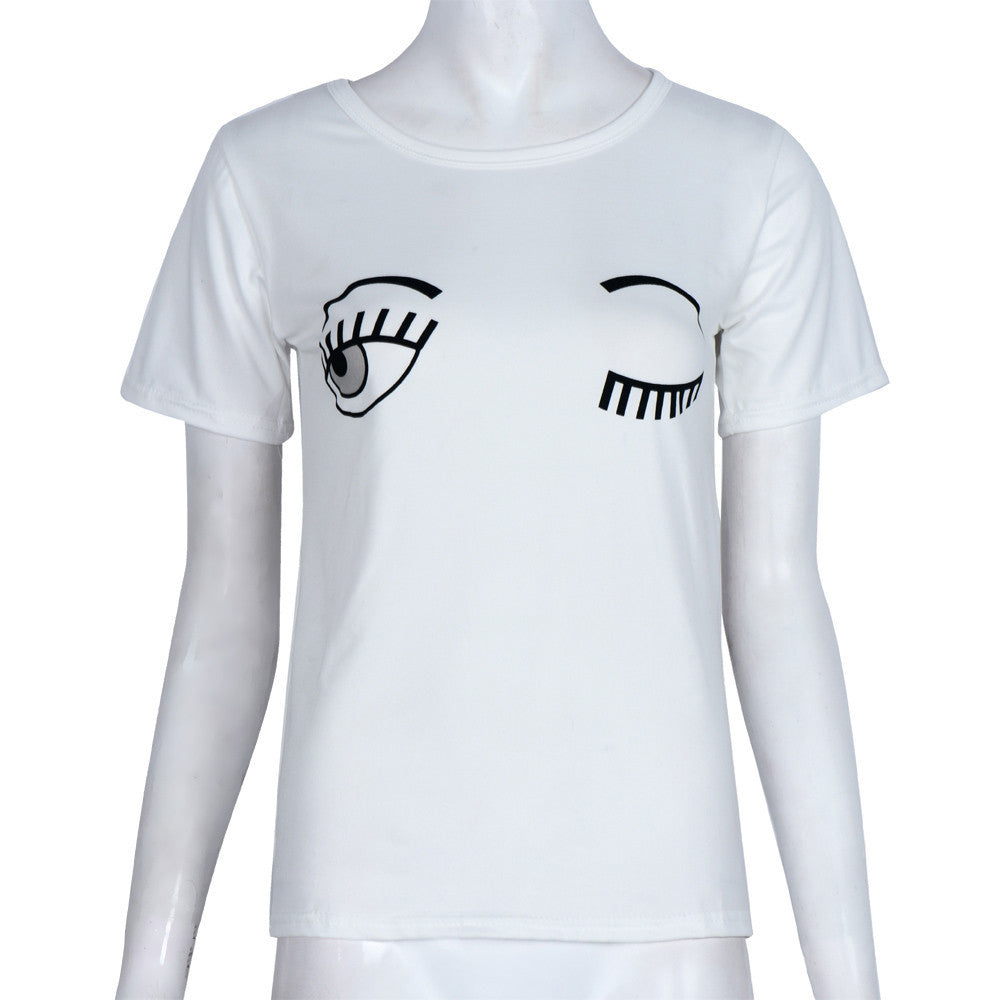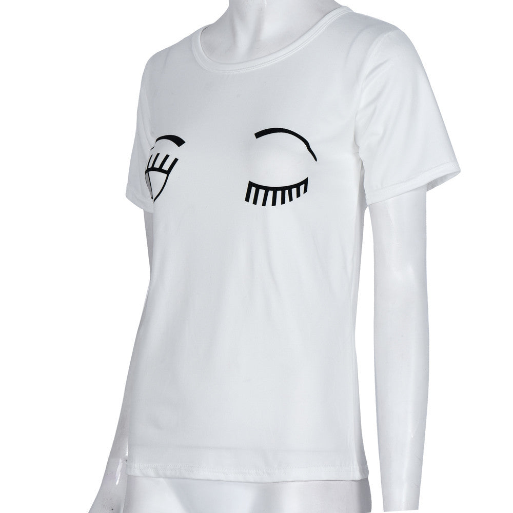 Eye Lashes Red Lips Loose T-shirts Print Women/Girl T-Shirt Cotton Women's Clothing Short Sleeve Tee IMY66