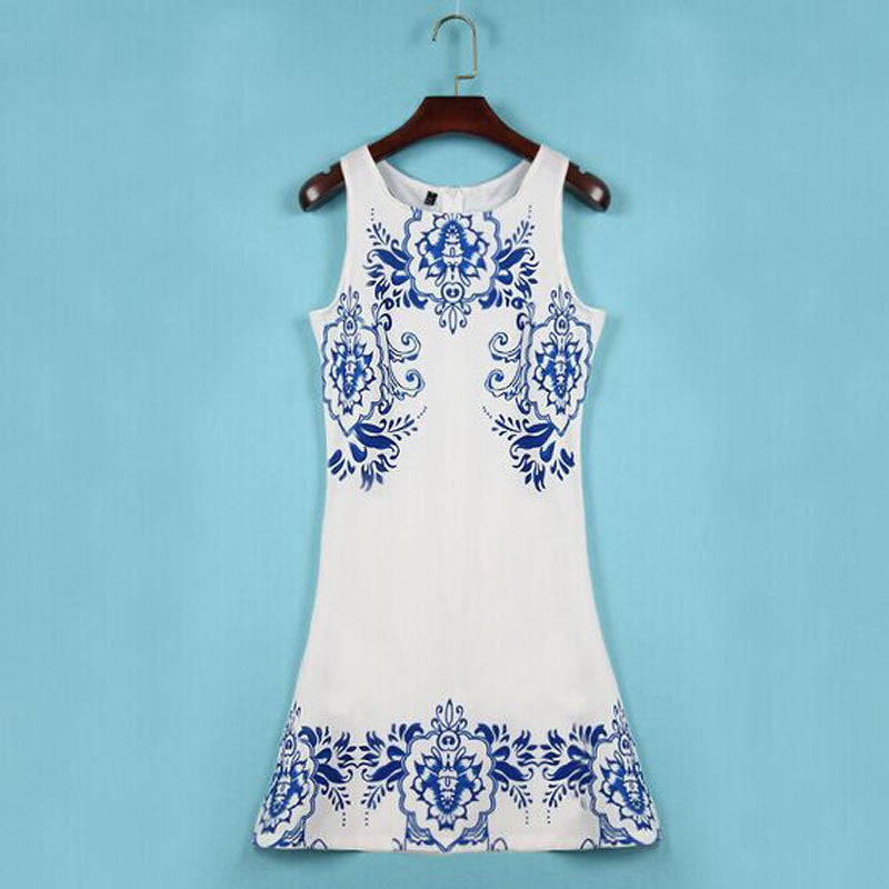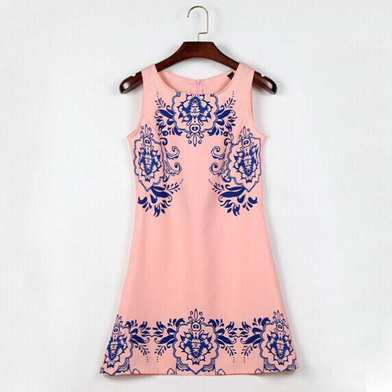 fashionwomen elegant sleeveless retro print femme vestido round Neck dress IMY66
