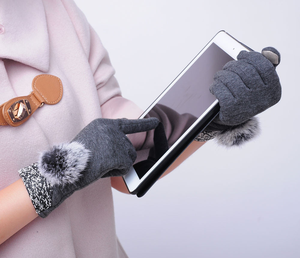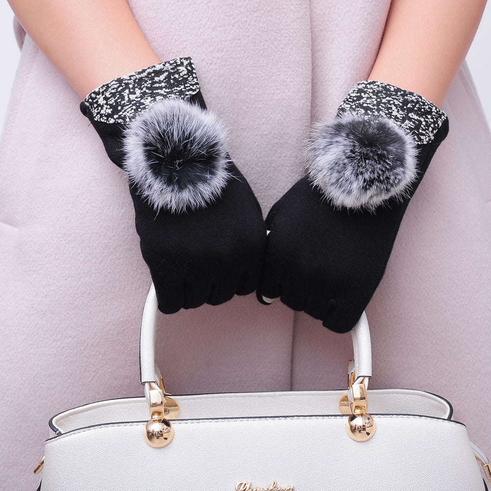 Fur Ball Gloves For Women Phone Touch Screen Cotton Warm Gloves Mittens Female Gloves luvas de inverno IMY66