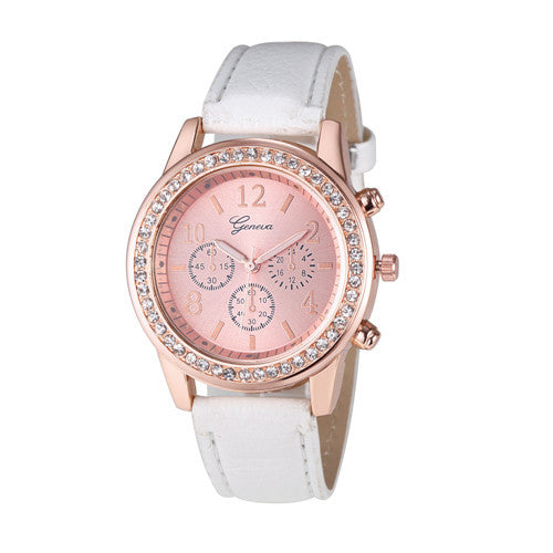 Geneva Luxury Watches Women Roman Watch Lady Rhinestone PU Leather Band Analog Quartz Wrist Watch relojes mujer IMY66