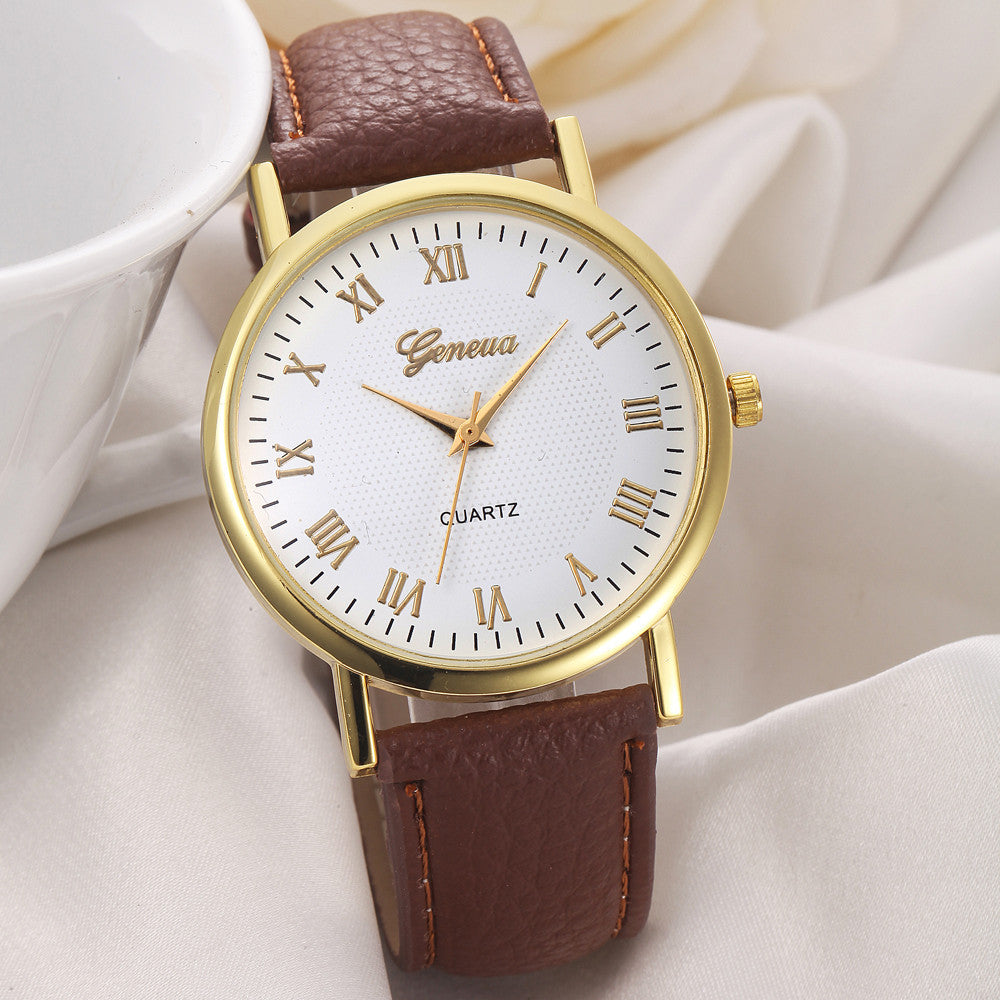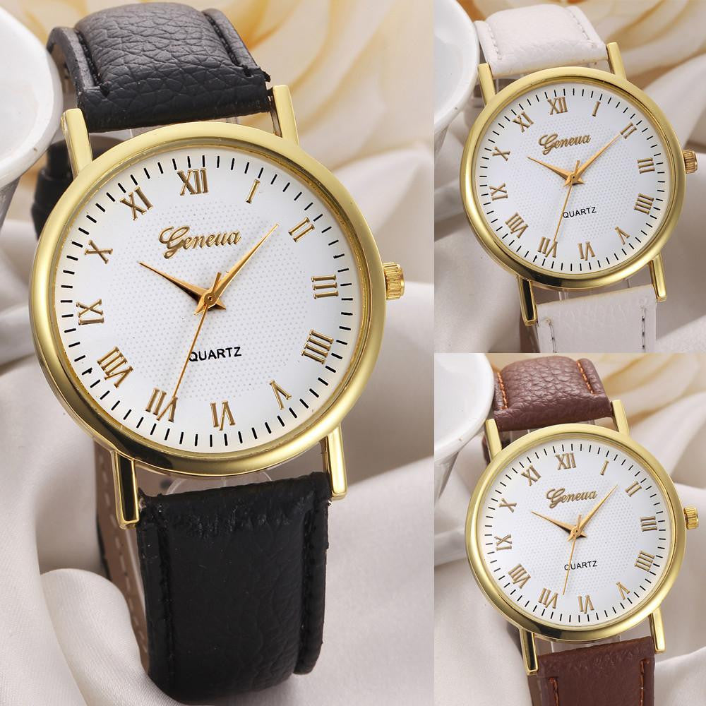 Geneva Unisex Watches Men Women Leisure Dial Faux Leather Band Roman Numerals Quartz WristWatch reloje mujer clock IMY66