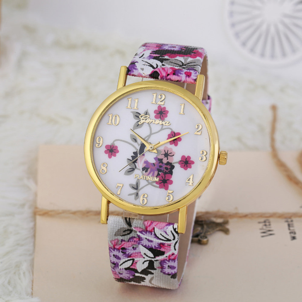 Geneva Women Casual Dress Watches Flower PU Leather Band Quartz Wrist Watch relogios feminino Clock IMY66