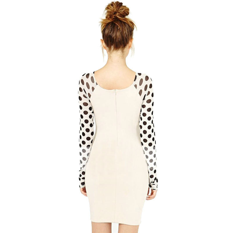 Girls Women Casual Clothing Work Wear Black Wave Point Polka Dot Splicing Slim Elastic Elegant White Dress IMY66