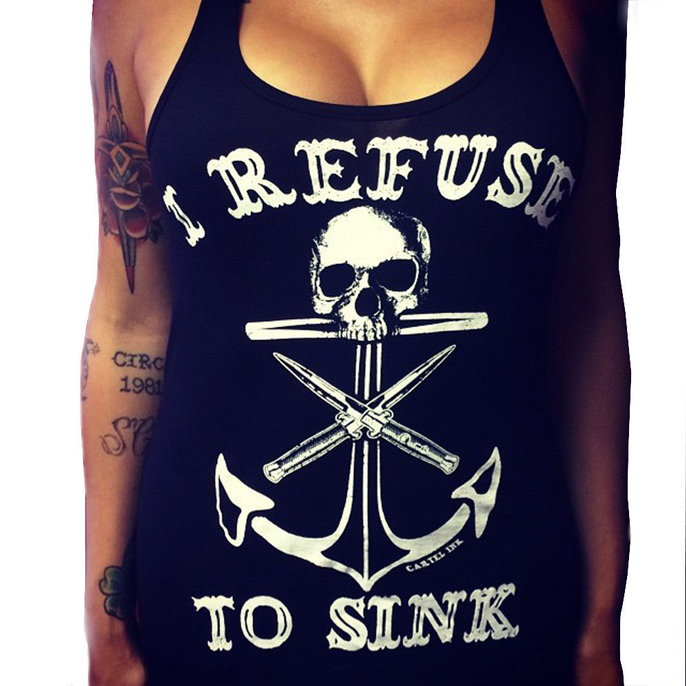 Harajuku Women Sexy Backless Boat Anchor Skull Printed Vest Sleeveless Tank Tops Shirt Camisole Female IMY66
